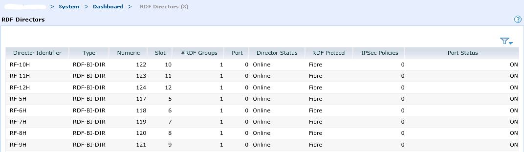 This will give you the list of all Front-End adapters on the VMAX displaying both online and connection status details. From the screenshot below you can see that FA-5E P0 and P1 are both online and P0 is connected (in our case it is connected to an Cisco MDS 9513 Multilayer Director). You can also see that while both FA-7H ports are online neither are connected to a port on the MDS. FA-7G both ports are online and both are connected to ports on MDS.