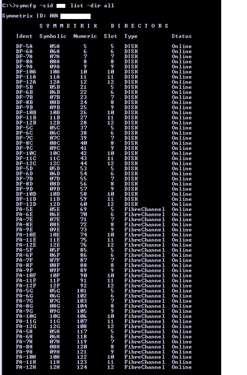In order to gather the wwn’s of all the VMAX front-end director ports the following command is quite useful. (See screenshot below)