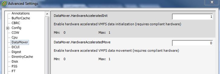 4.Change the DataMover.HardwareAcceleratedMove setting to 0.
