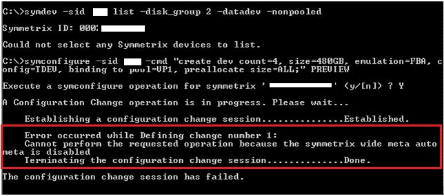 3.Run the following command: symconfigure -sid xxx -f auto_meta.txt commit -nop
