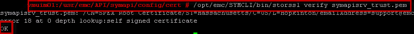 vmuim01:/usr/emc/API/symapi/config/cert # /opt/emc/SYMCLI/bin/storssl verify symapisrv_trust.pem