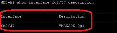 So lets take an example: the design and expectation here is to have the VMAX Port 9G:1 connected to MDS FC Interface 2/37 and the interface was given the relevant description: