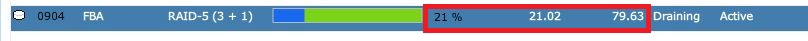 This immediately places the volume into a Draining state and any Data present on the device is balanced across the remaining enabled TDAT’s (08FD-0903) within the Thin Pool: