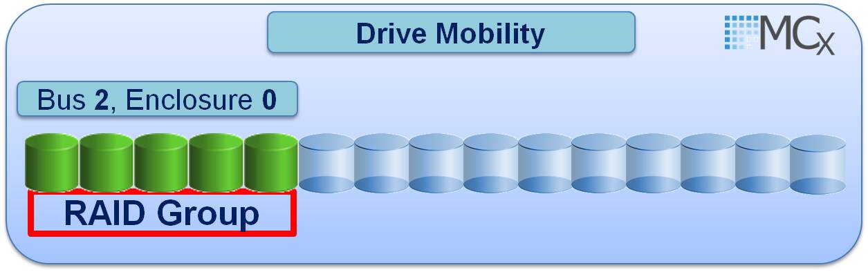 In addition to the CopyToDisk approach to keeping your original physical Raid Group B_E_D structures in place there is also another new MCx feature called Drive Mobility that allows you to swap the failed drive with the Spare that has been used as its replacement. For example you may have a failed drive in 2_0_0 which is part of a Raid_5(4+1) 2_0_0 – 2_0_4