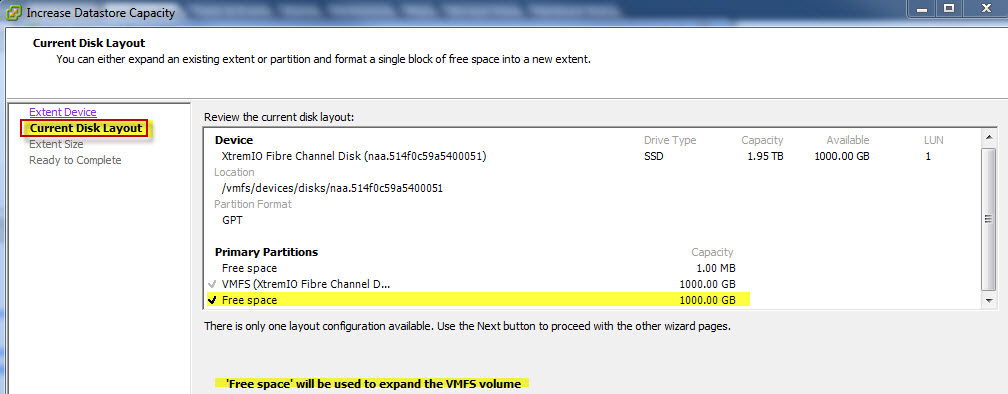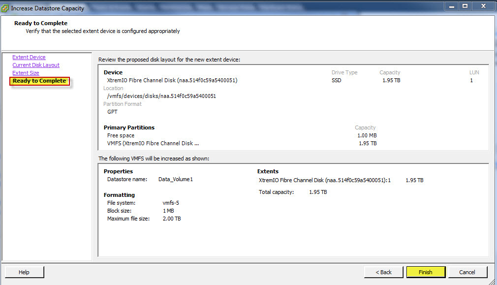 The ‘Data_Volume1’ VMFS datastore has been successfully increased by 1TB of XtremIO storage: