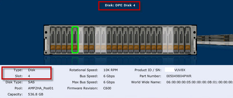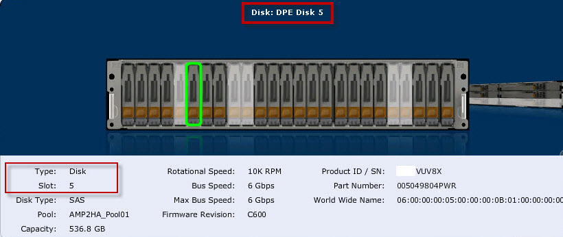For this example the drive located in SLOT-5 of the DPE will be physically removed and placed in SLOT-4 on the same DPE.