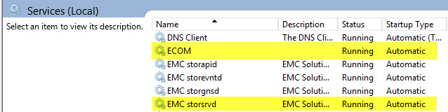 From the windows services.msc console check that both the ‘ECOM’ and ‘storsrvd’ services are set to automatic and in a running state: