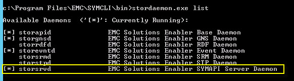 Check that EMC storsrvd daemon is installed and running from a Windows cmd prompt using stordaemon.exe: