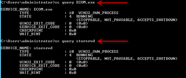 Or using the SC (service control) command you can query/start/config the ECOM and storsrvd services: