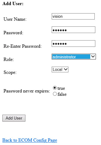 Provided all the validations are successful then proceed to login to the ECOM server and create the user you would like to use for (Vision/ViPR) connectivity: