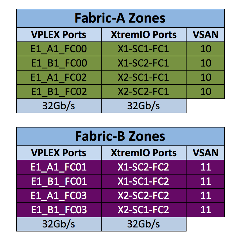 While the following examples provide the associated Cisco zoning for their respective configurations, in the case where ViPR is part of the solution you may chose to either manually complete this task as per the example scripts below which is seamless to ViPR or let ViPR automatically handle this zoning configuration task. As an example if you chose to allow ViPR to automatically configure the Back-end zoning and you only require at the time to use 50% of the available VPLEX BE ports (depending on the VPLEX-XtremIO config and future scalability requirements) then you can manually tell ViPR to use only the FC00 & FC01 director ports, ViPR follows VPlex-XtremIO best practices and chooses ports based on maximum redundancy.