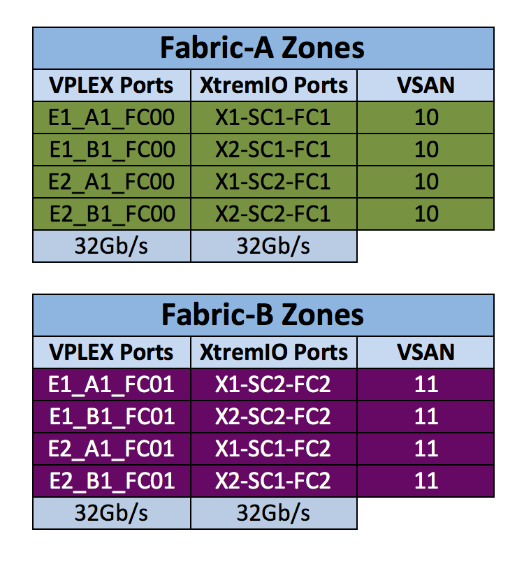 This post will detail some general best practices for VPLEX Back-end connectivity to an XtremIO storage array. As you will see from the diagrams below each VPLEX director should have redundant physical connectivity to the XtremIO storage array across Fabric-A & B. Due to the fact that XtremIO is an active/active array each X-Brick storage controller FC port has access to all provisioned storage on the array. In essence the objective here is to balance each VPLEX Director across each XtremIO Storage controller as evenly as possible thus avoiding any bottlenecks in connectivity between Back-end VPLEX to XtremIO front-end. The configuration examples provided (not limited to) are for the following scenarios:
