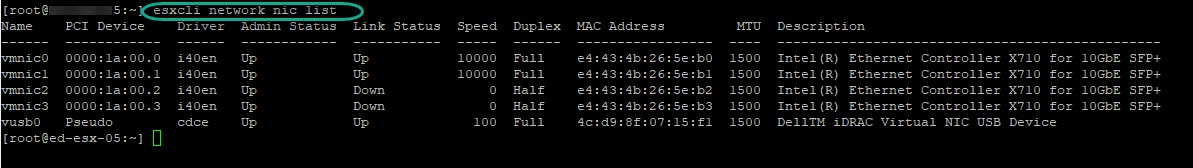 esxcli network nic list