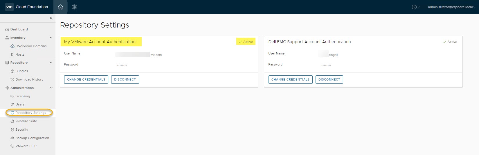 Note: ensure ‘My VMware’ creds are entered successfully in the SDDC Manager repository settings and the list of available products are being displayed in the SDDC Manager repository.