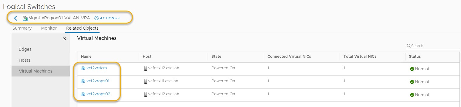 You will notice that vRSLCM & vROPs get deployed to the AVN ‘Mgmt-xRegion01-VXLAN-VRA’ which was created as part of the VCF bring-up process highlighted earlier:vcf391walkthruVRSLCM0vcf391walkthruVROPs00