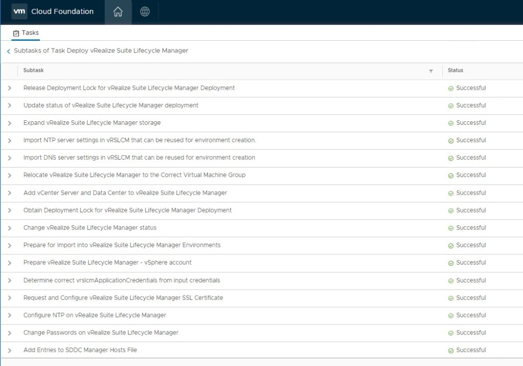 Details of tasks performed during the vRSLCM deployment: