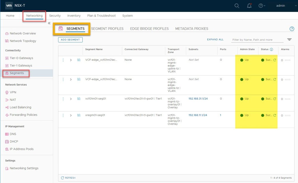Additional network view from both vSphere client and NSX-T manager UI: