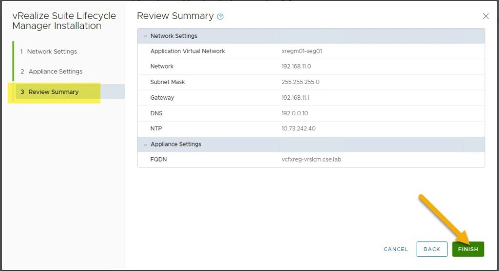 Review provided settings and click FINISH: