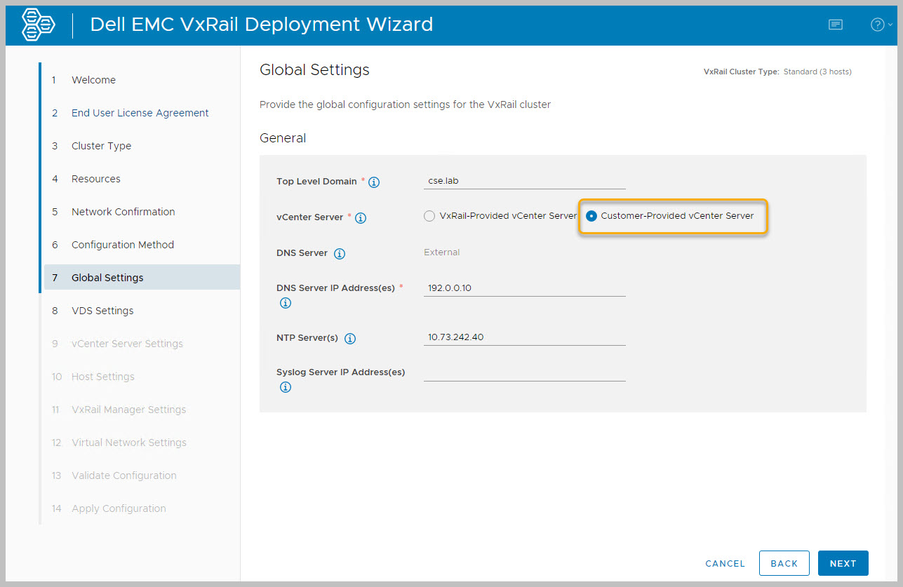 2. Customer Supplied vCenter Server