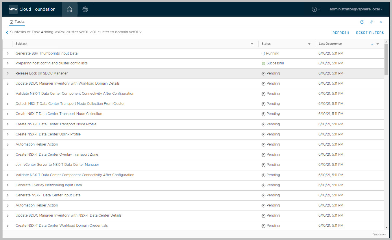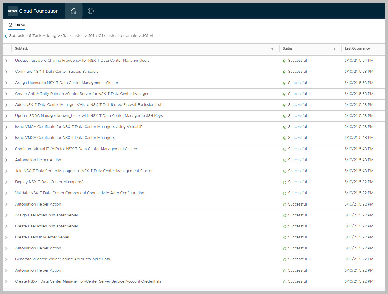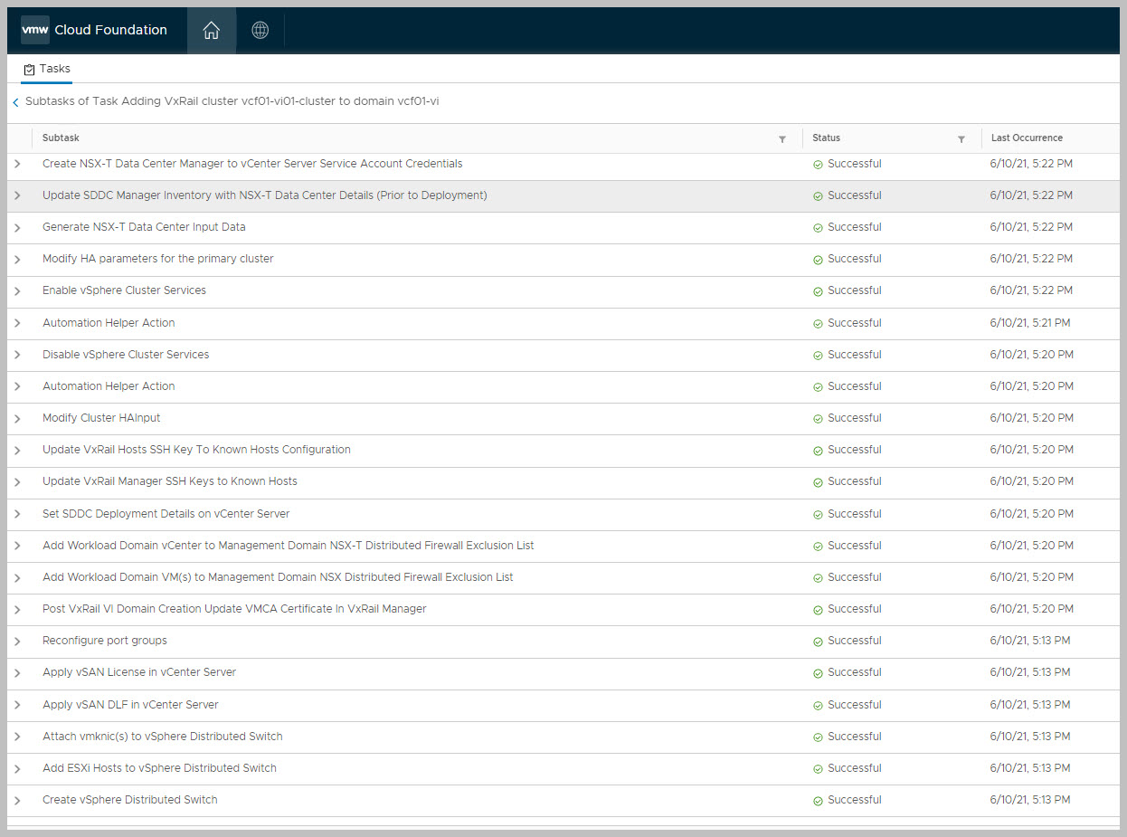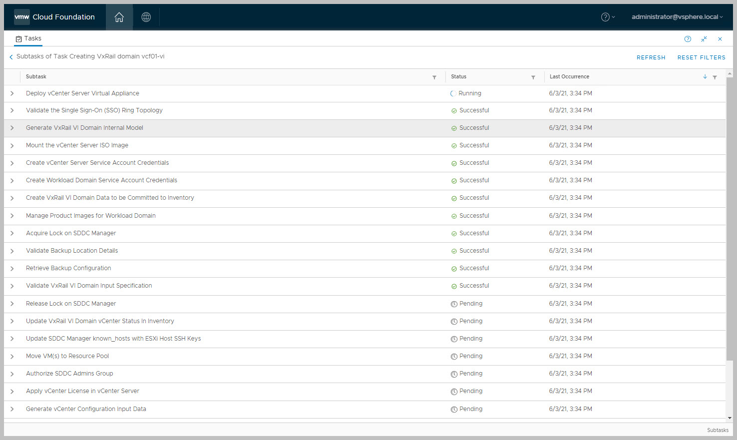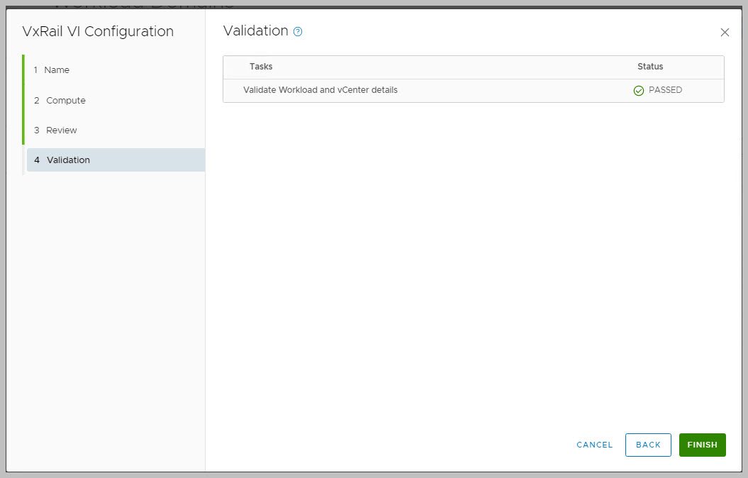 The VxRail bring-up of the VI WLD Cluster is similar to a standard VxRail bring-up with EXTERNAL vCenter being deployed by SDDC Manager as per above. Tasks include: