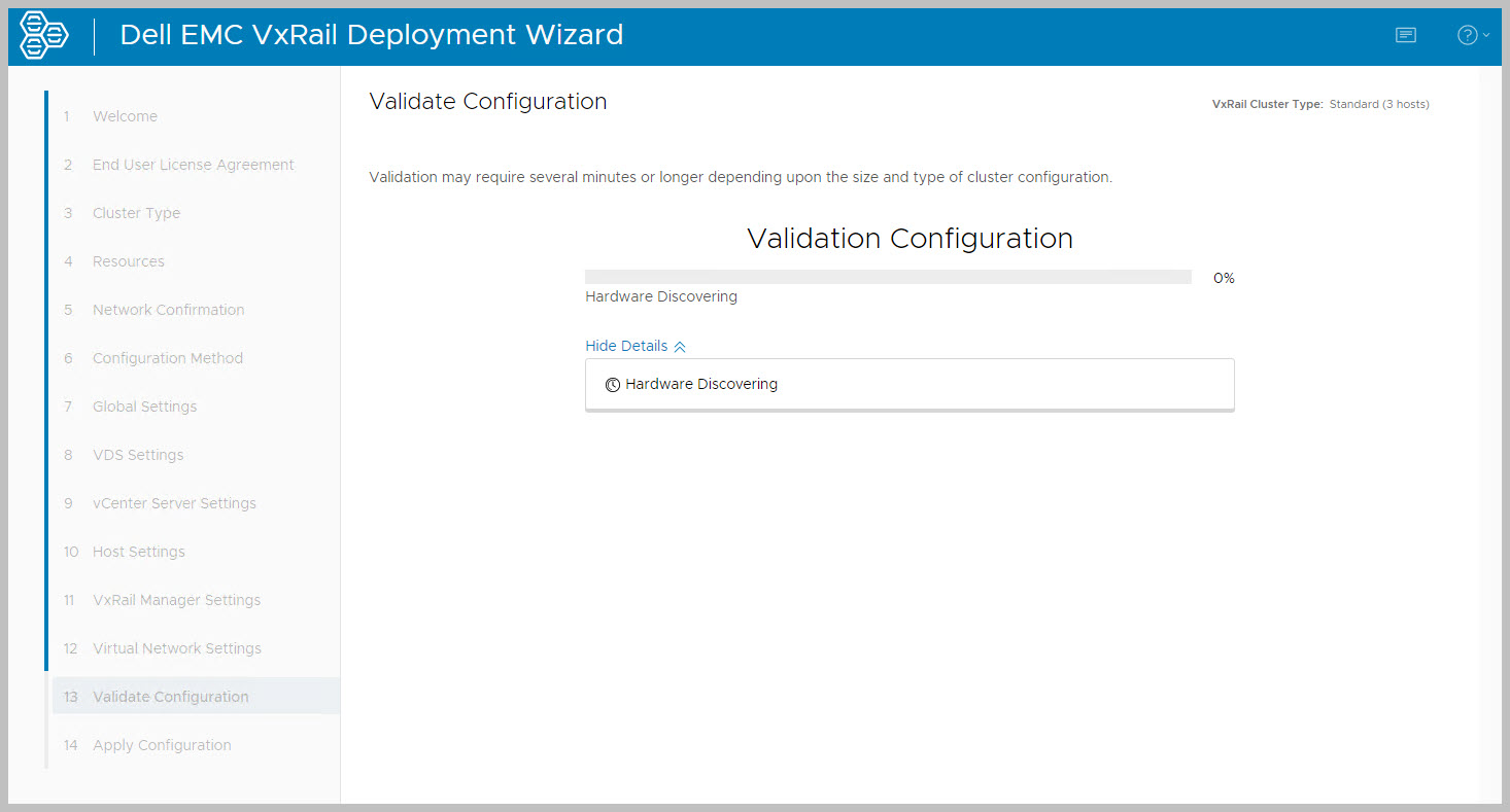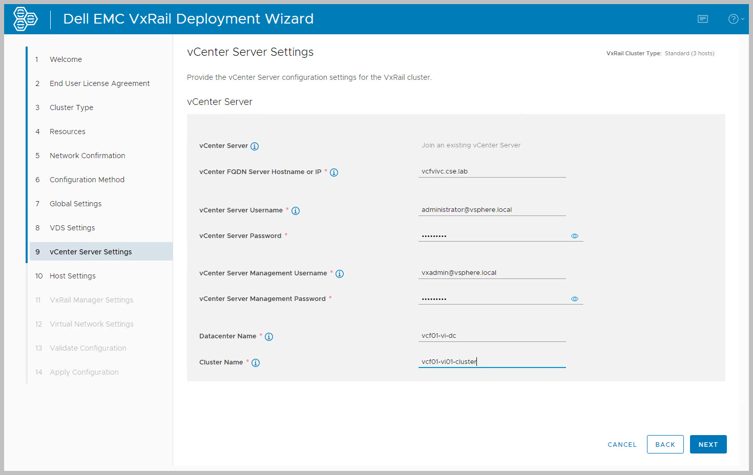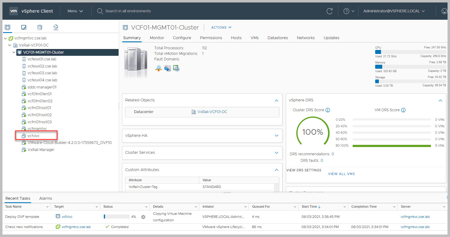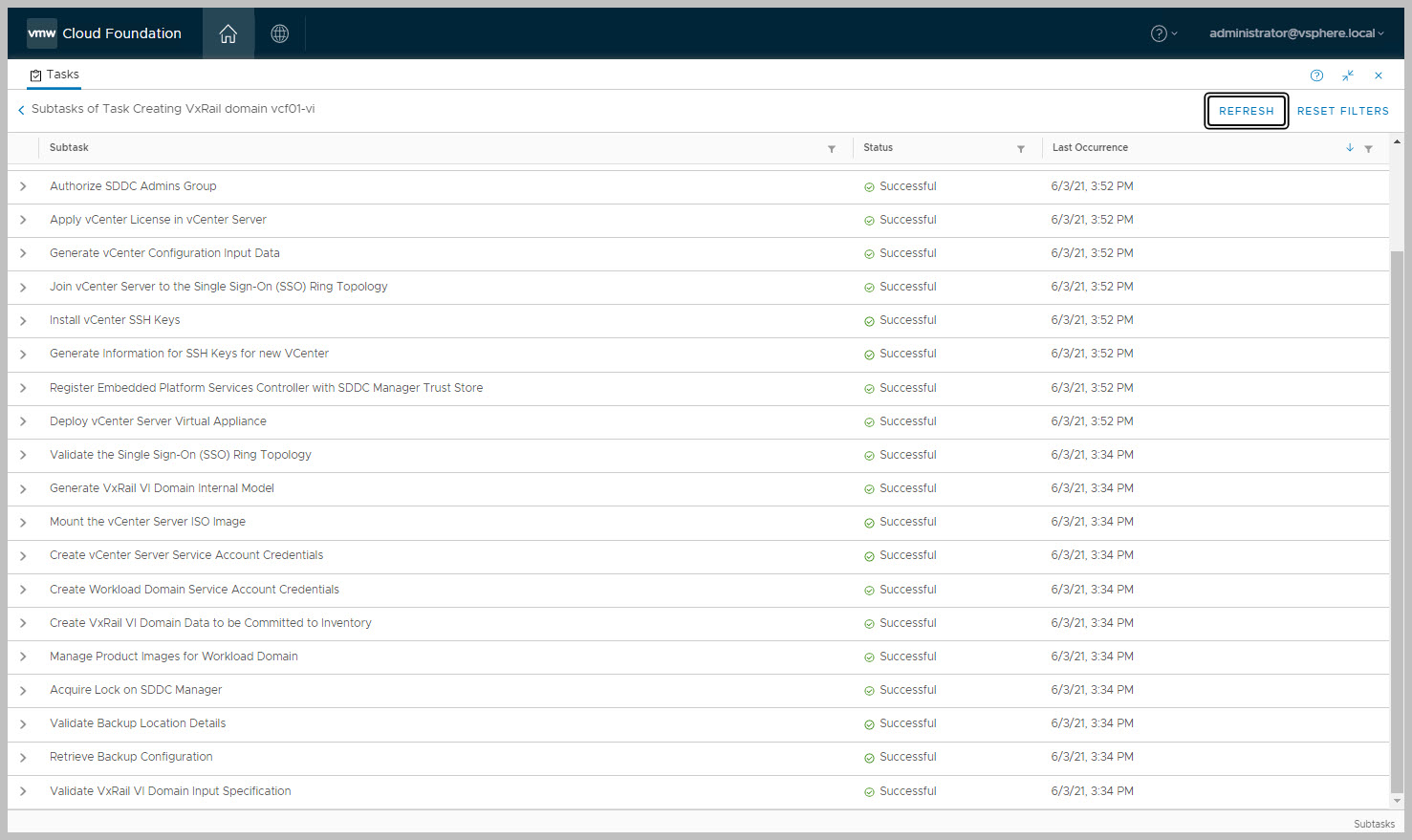The VxRail bring-up of the VI WLD Cluster is similar to a standard VxRail bring-up with EXTERNAL vCenter being deployed by SDDC Manager as per above. Tasks include: