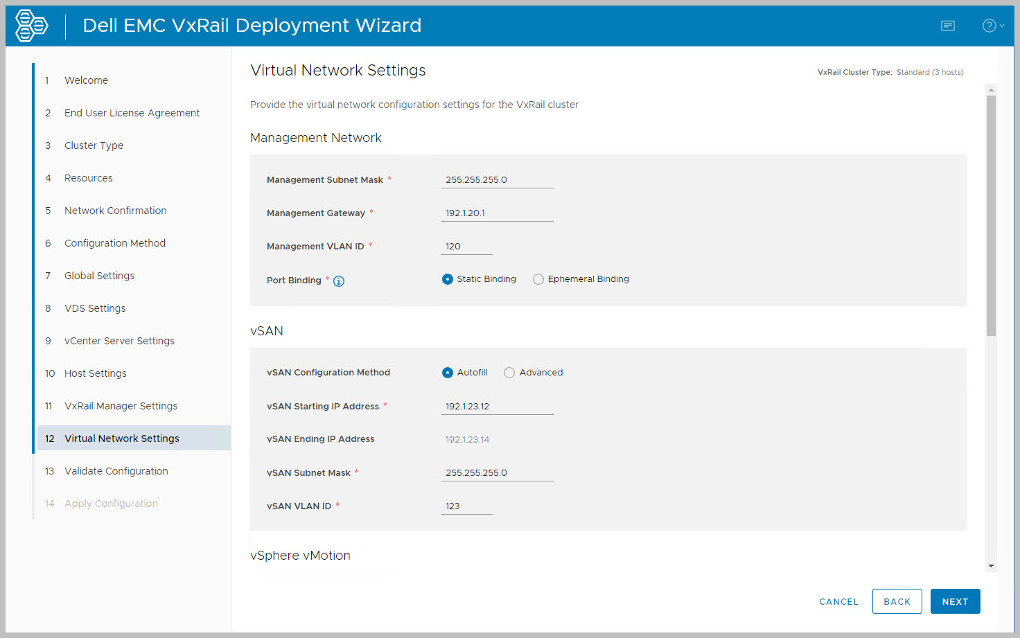 Note: this is an example for reference only please use the VxRail installation procedures & services provided by Dell.