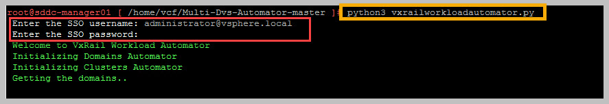 Next execute the python scrip from within the SDDC Manager terminal entering the required SSO Creds: