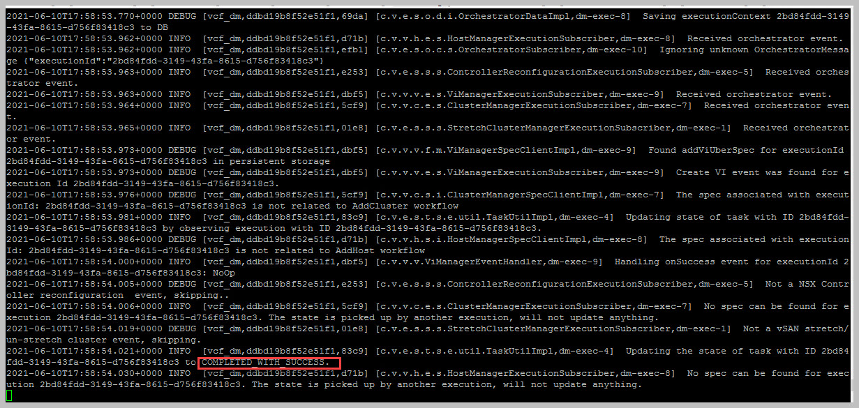 Now follow the prompts to enter all the required details for an NSX-T VI WLD deployment, which includes validation and execution with success and monitoring via SDDC UI and cli: