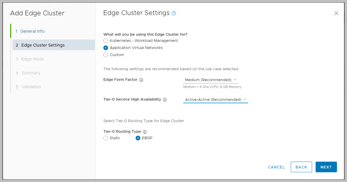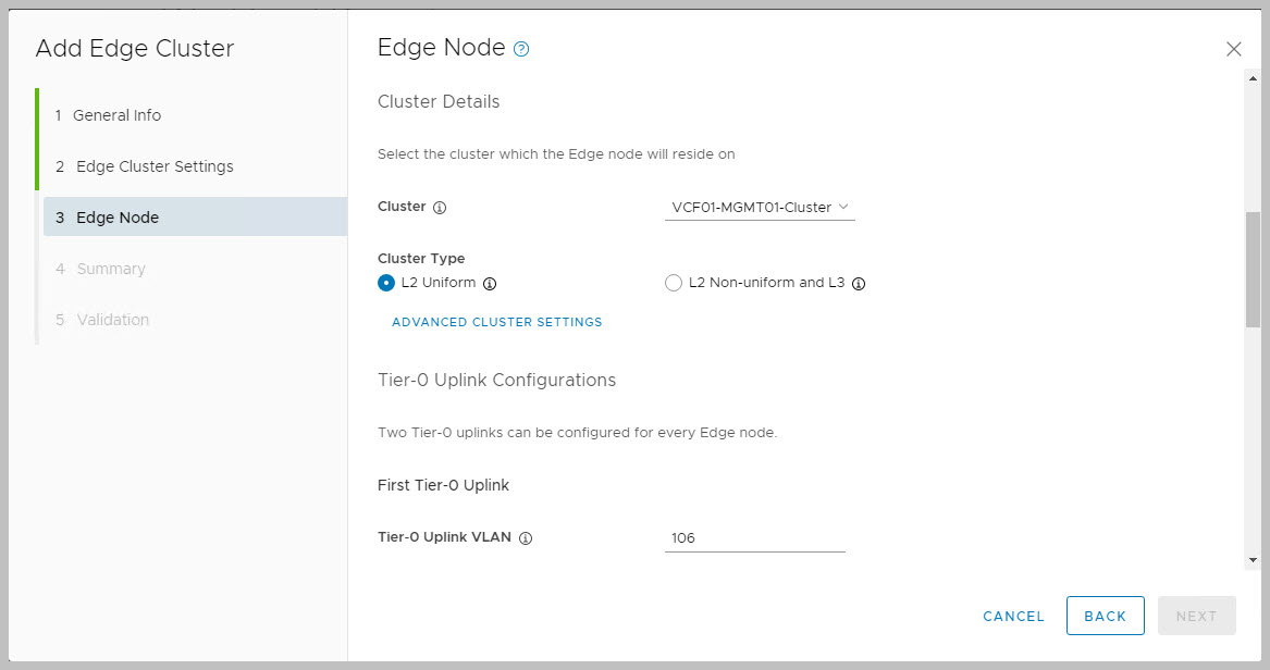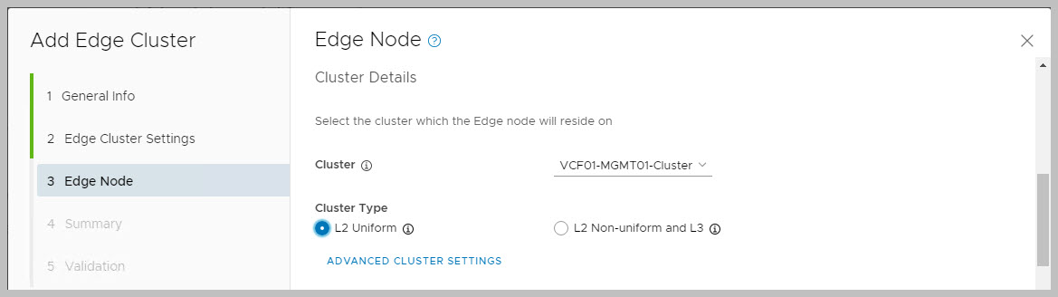 Note re. Stretched Cluster:You cannot deploy an NSX Edge cluster on a vSphere cluster that is stretched. You can stretch an L2 uniform vSphere cluster that hosts an NSX Edge cluster.
