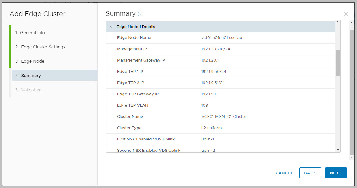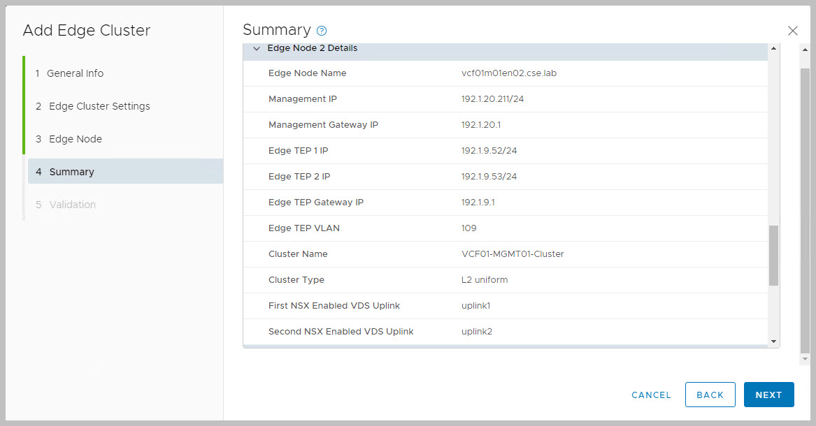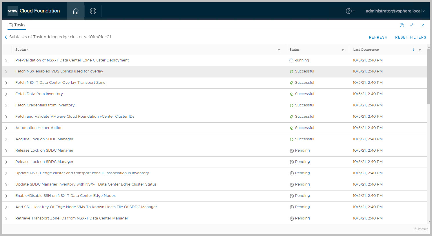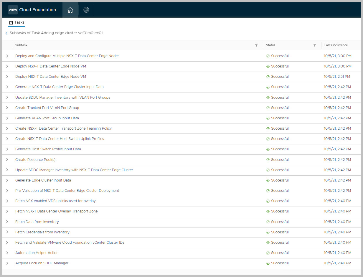 On completion we can view the newly deployed and configured Edge Cluster from both the vCenter & SDDC Manager UI: