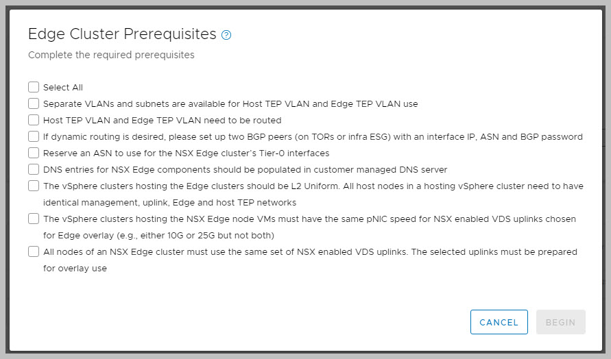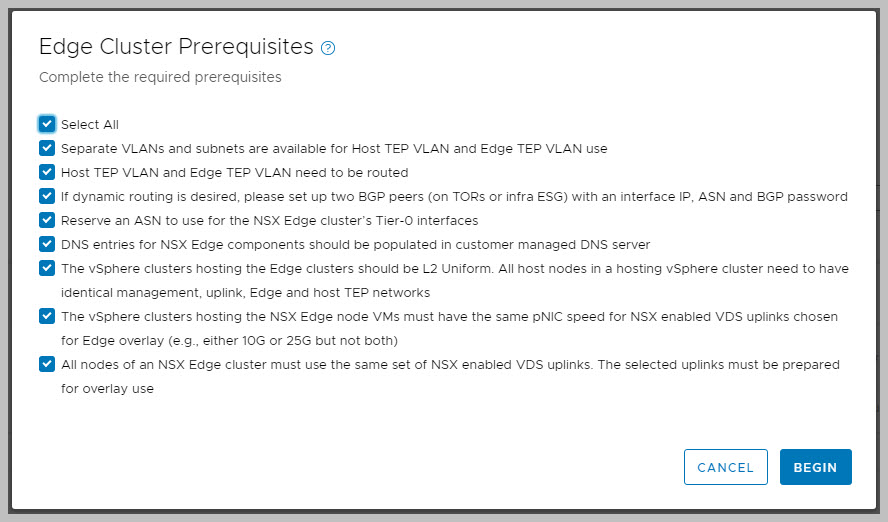 Please reference the VMware prerequisites Before you deploy an NSX Edge cluster: