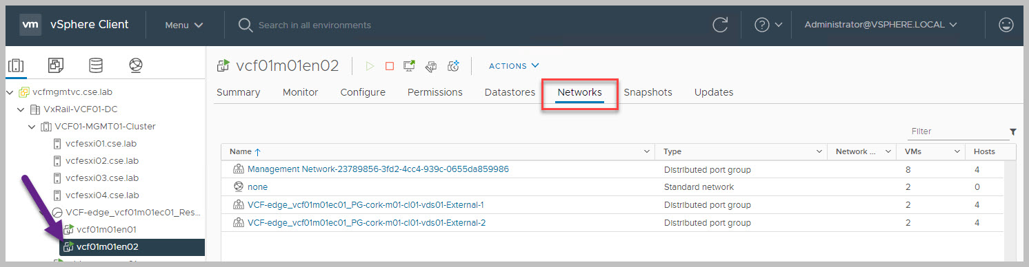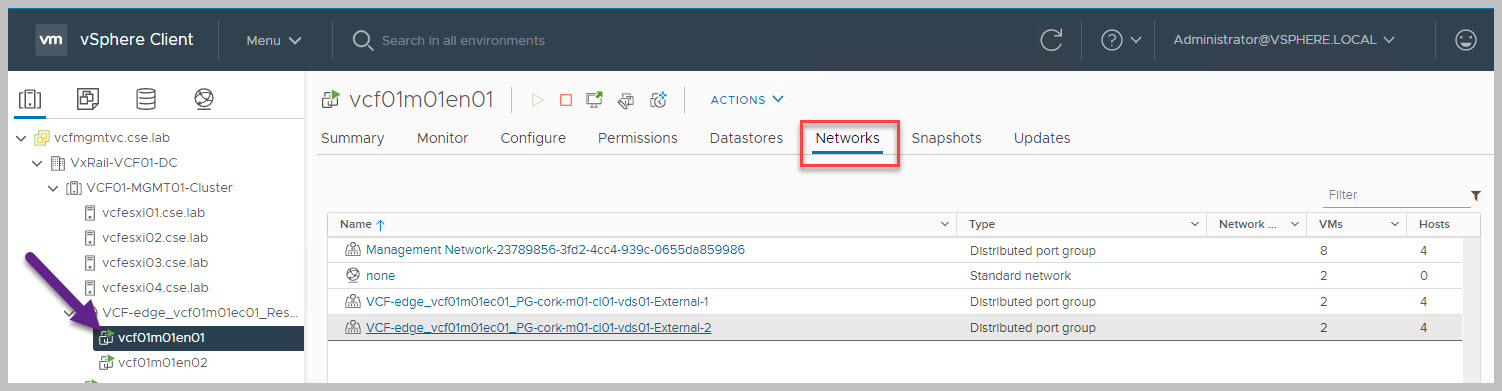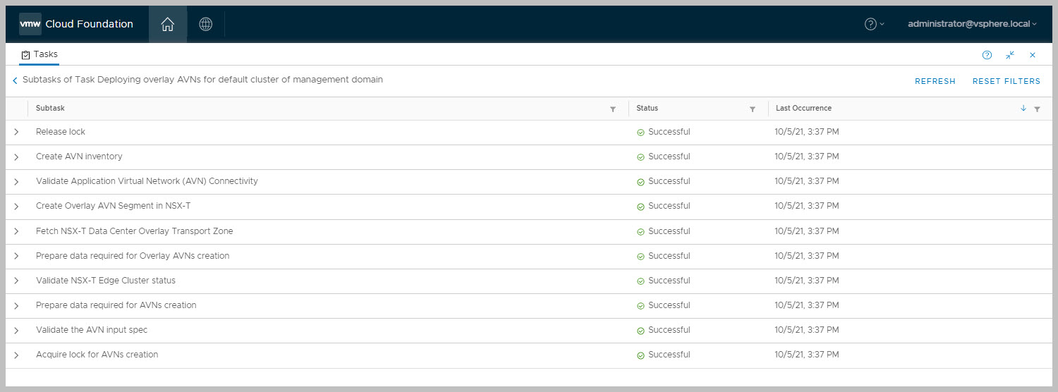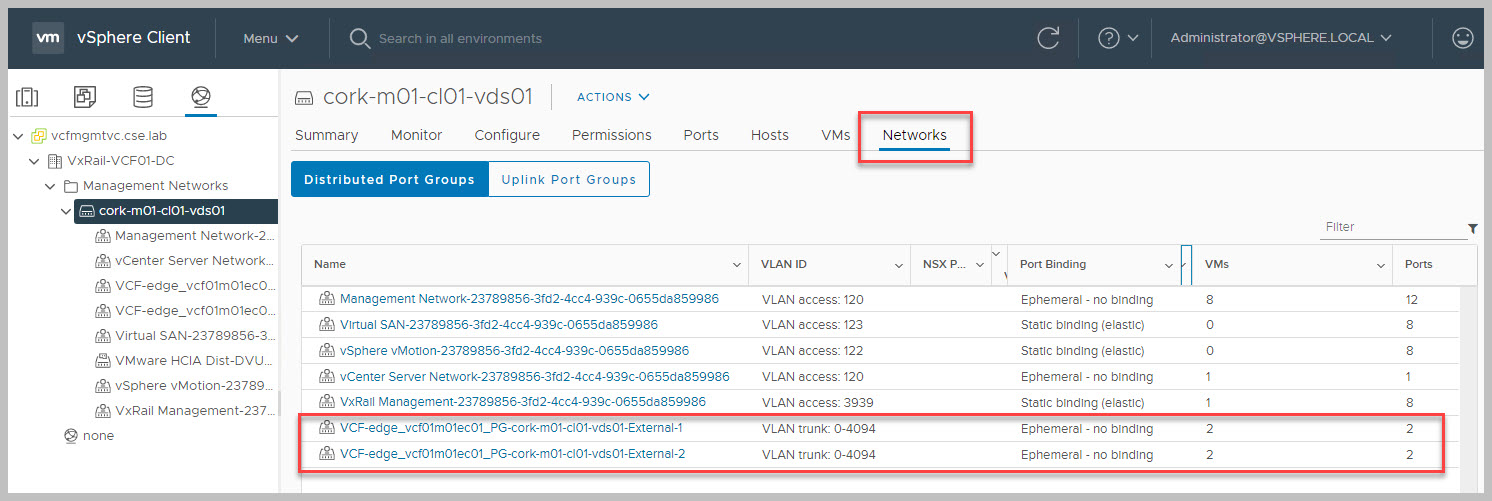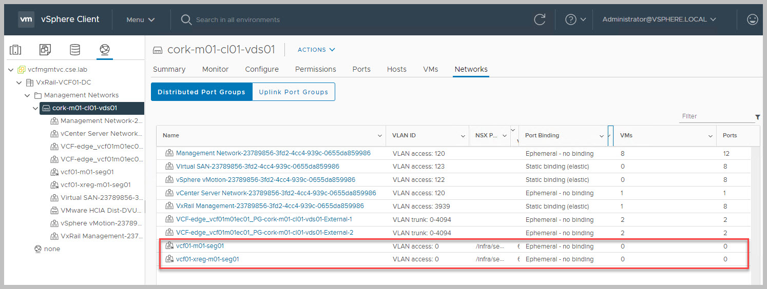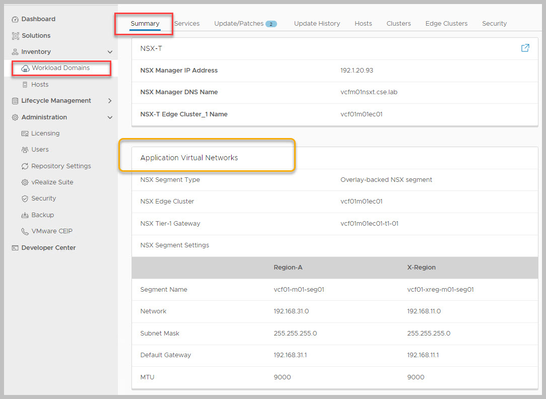 On completion we can view the newly deployed and configured AVNs from both the vCenter & SDDC Manager UI: