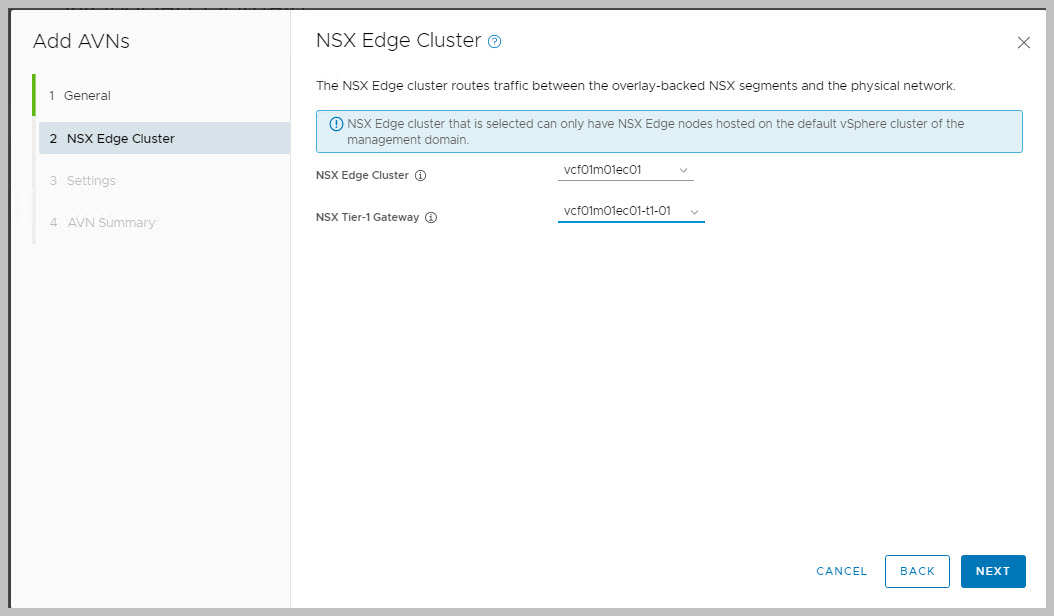 Prior to VCF 4.3 Application Virtual Networks(AVN)s including the NSX Edge Cluster and NSX network segments were deployed and configured during bring-up by Cloud Builder. Example of this process can […]