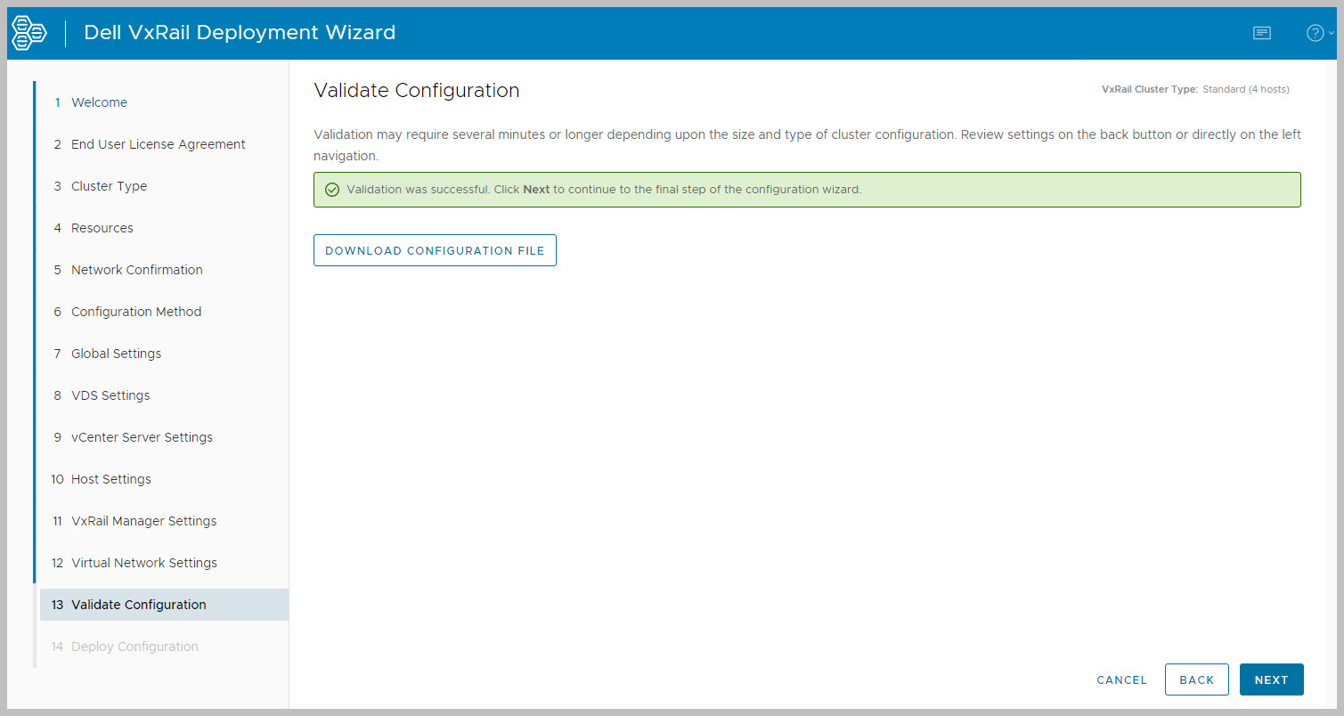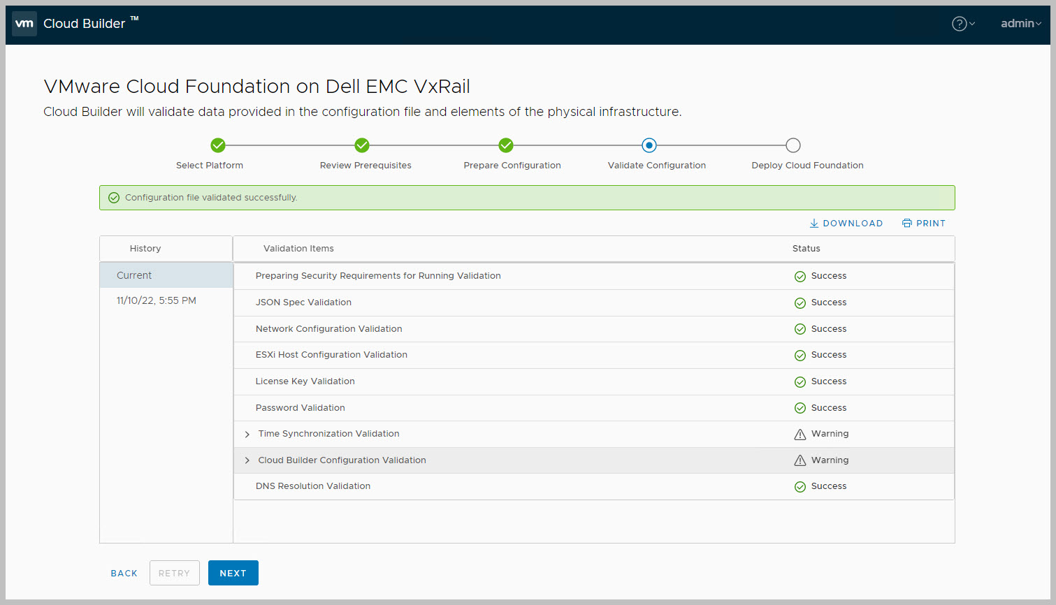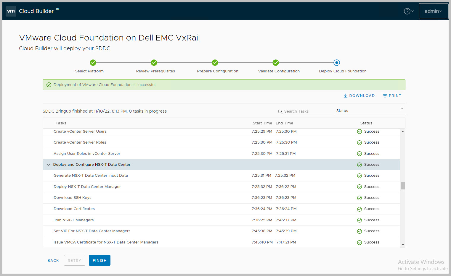 Note: Cloud Builder in previous releases generated a JSON file for the management cluster from the uploaded config file, this vcf-public-vxrail.json file is now automatically deleted upon successful bring-up to address security concerns.