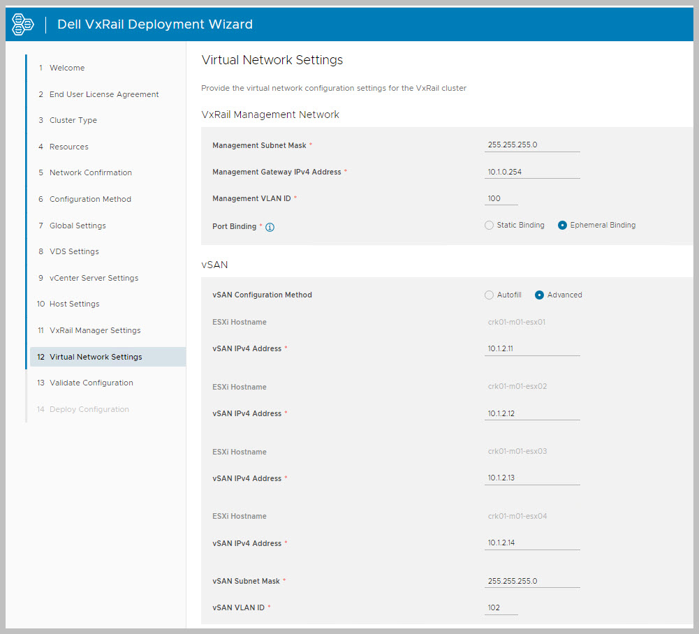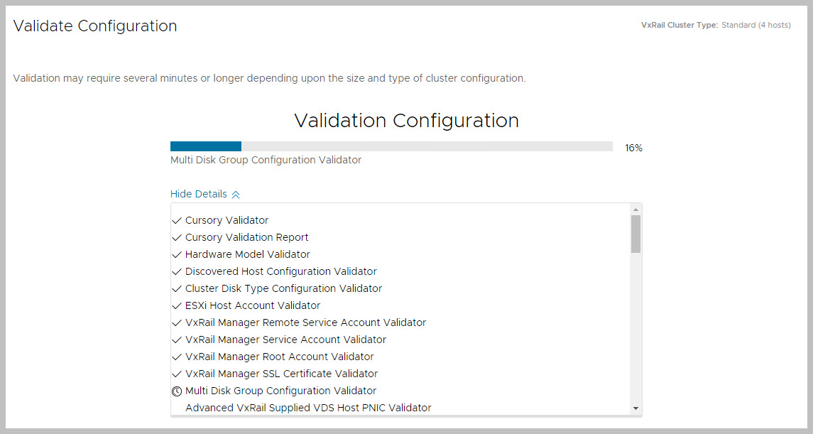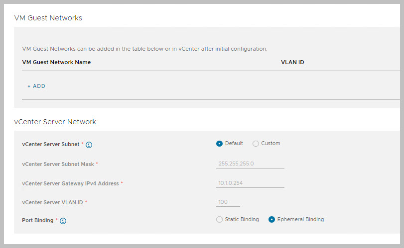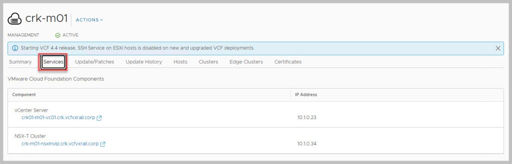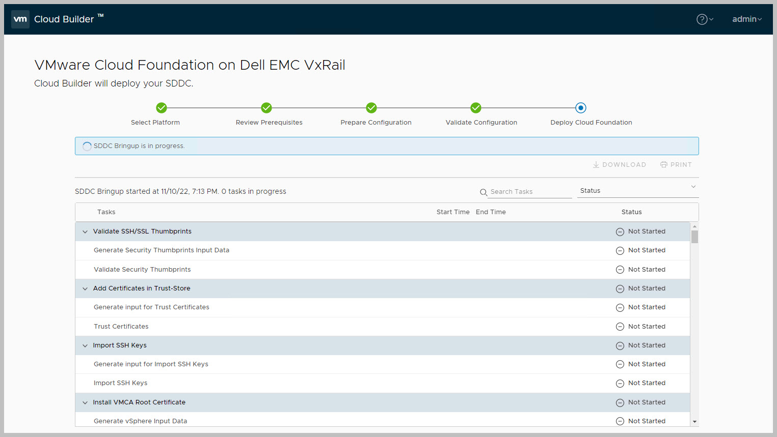 The VxRail bring-up of the Management Cluster is similar to a standard VxRail bring-up with embedded vCenter being deployed. Previously there was a requirement to externalize the vCenter using VxRail Manager plugin from the vCenter HTML client but this is now fully automated as part of the Cloud Builder Bring-Up process. Also changing the Management port group to Ephemeral port type post VxRail bring-up is also not required as it is now an option during the VxRail deployment as can be seen in the following walkthrough (Design Justification: Using ephemeral port binding provides the option for recovery of the vCenter Server instance that is managing the distributed switch). SSH service on each ESXi host is disabled by default as part of the bring-up. Tasks include: