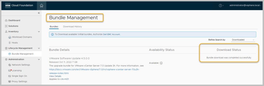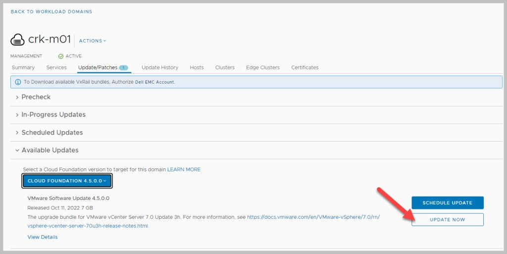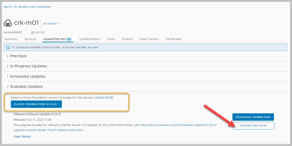 Versions used in this example are VCF 4.5 & VxRail 7.0.400. Release Information: