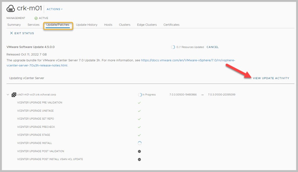 Steps to complete the upgrade of vCenter after Bring-up is complete: