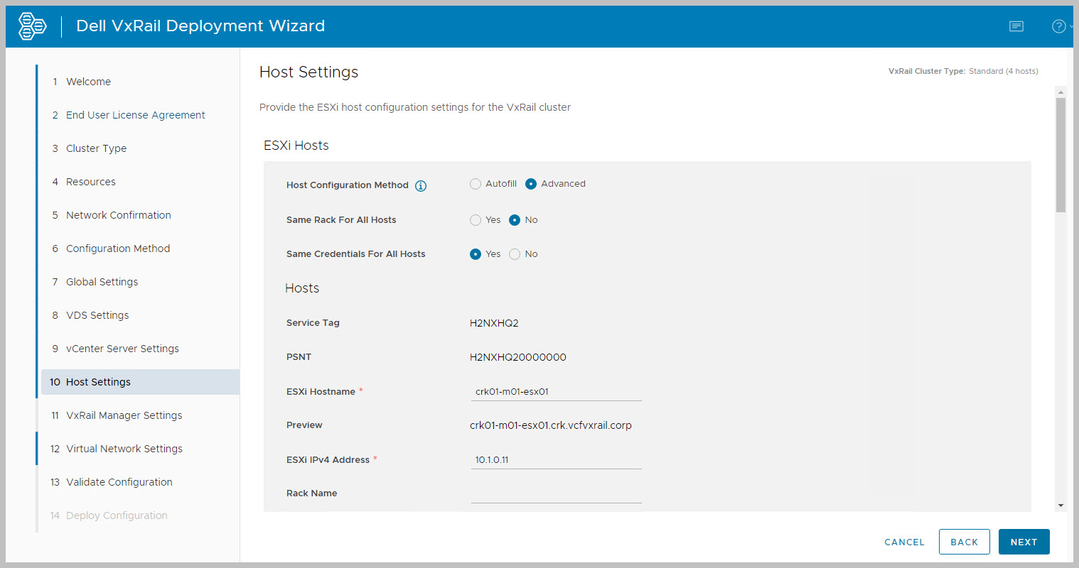Note: this is an example for reference only please use the VxRail installation procedures provided by Dell.