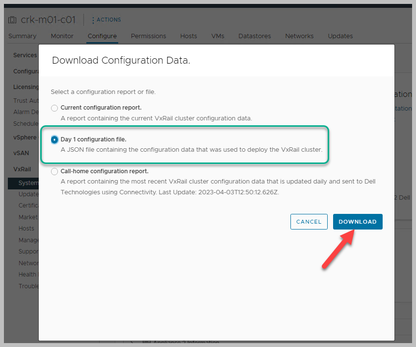 VxRail – Download ‘DAY 1’ Configuration File