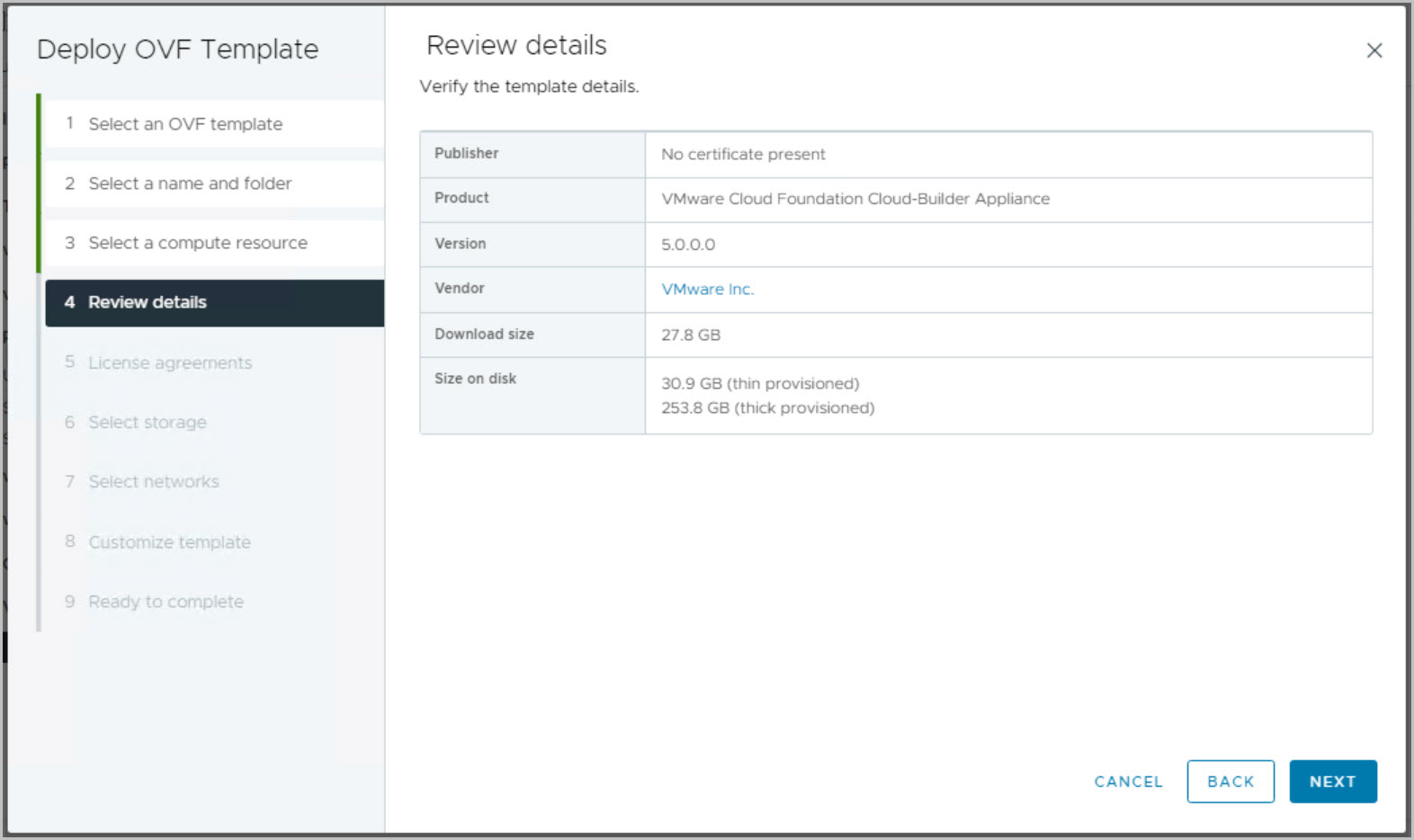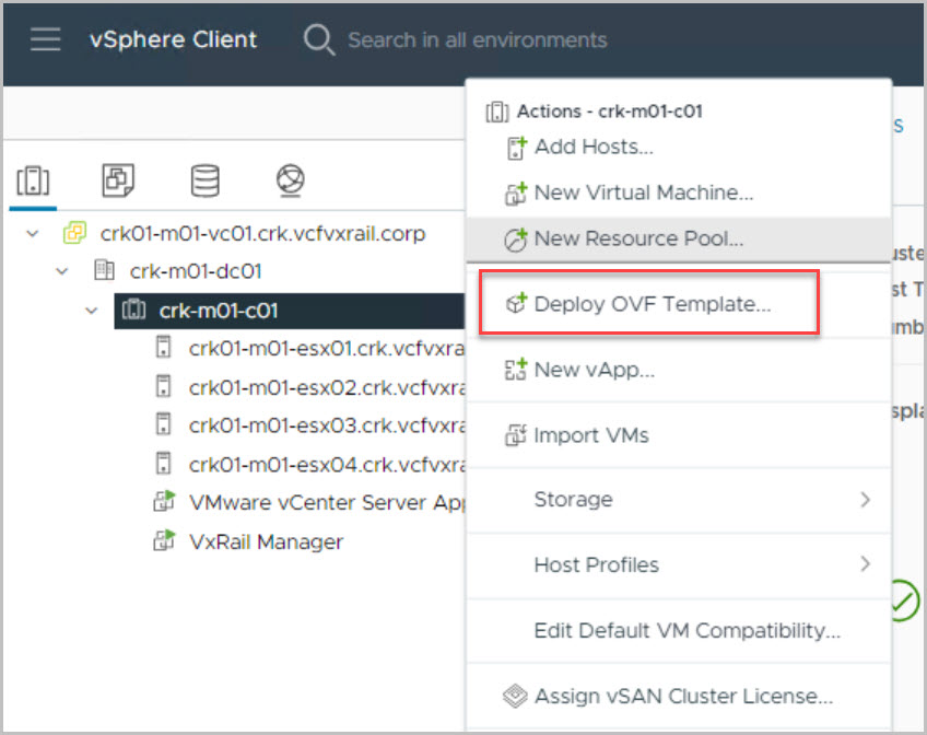 VCF On VxRail is deployed leveraging VMware Cloud Builder for which the OVA can be downloaded from VMware.com and deployed as follows: