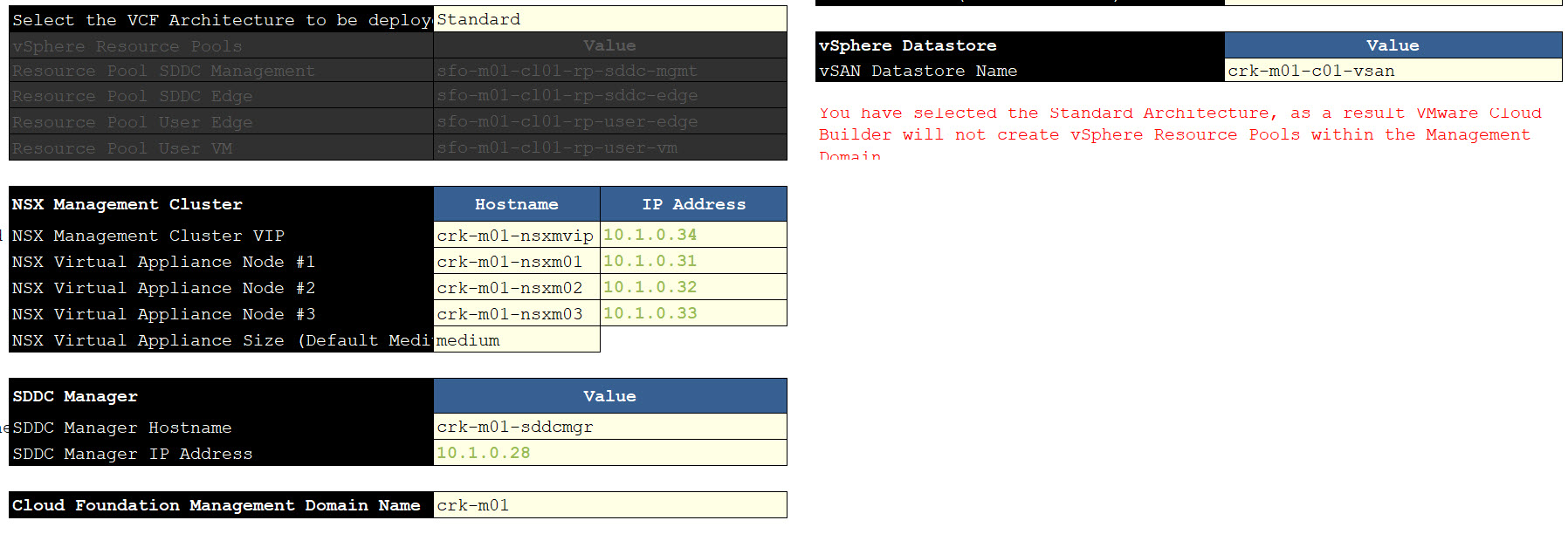 Below are some example screen captures of the parameter sheet (Note: it is no longer required to provide Edge/AVN entries and BGP Peering details at this point as this task is now a Day-N option which I will cover later in this series.):