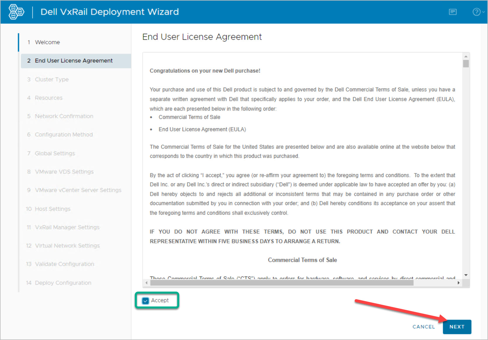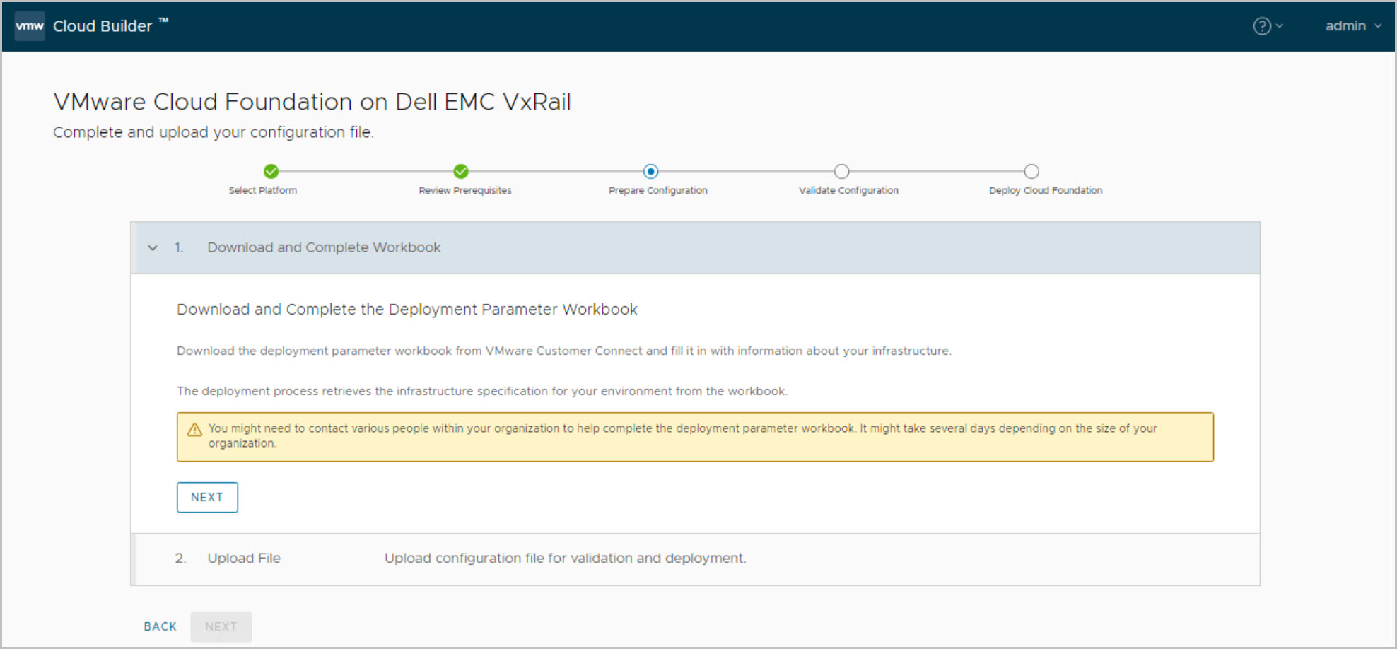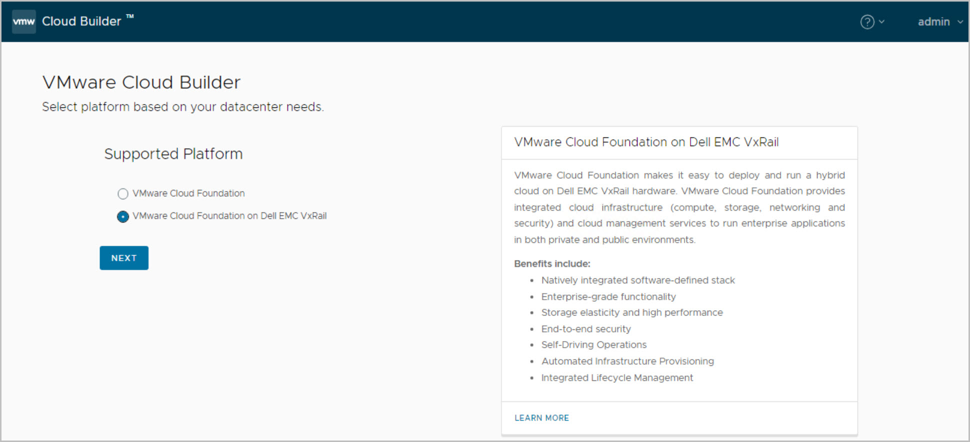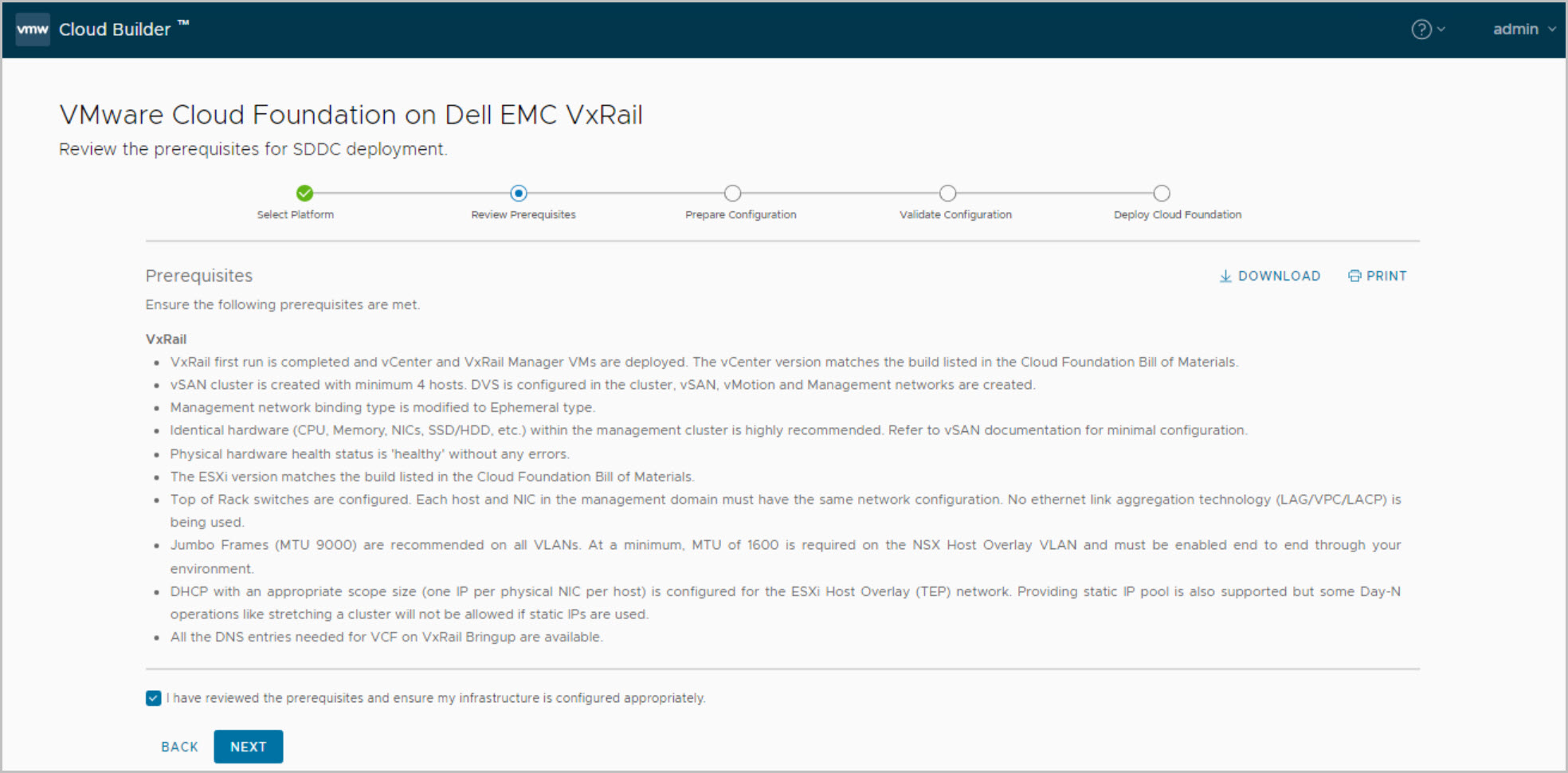 The following section details the VCF on VxRail Bring-Up. At this stage the Cloud Builder VM has been deployed, powered on and user logged into the Cloud Builder UI, from here you proceed as follow: