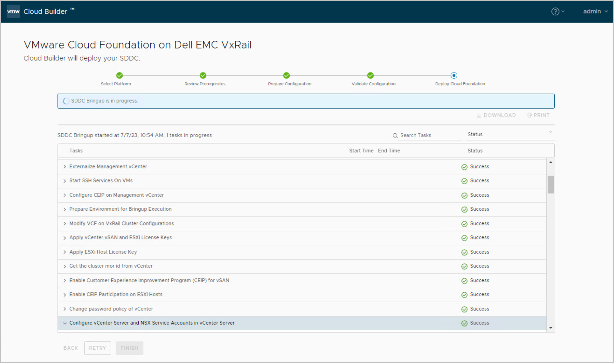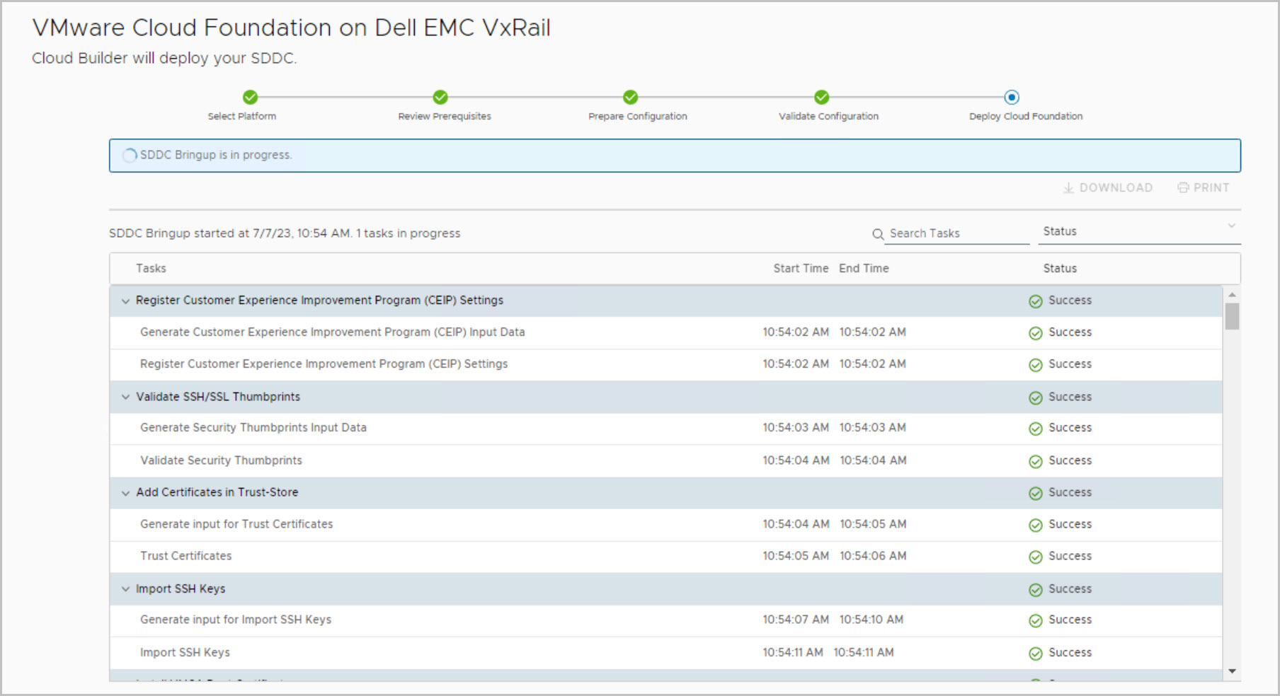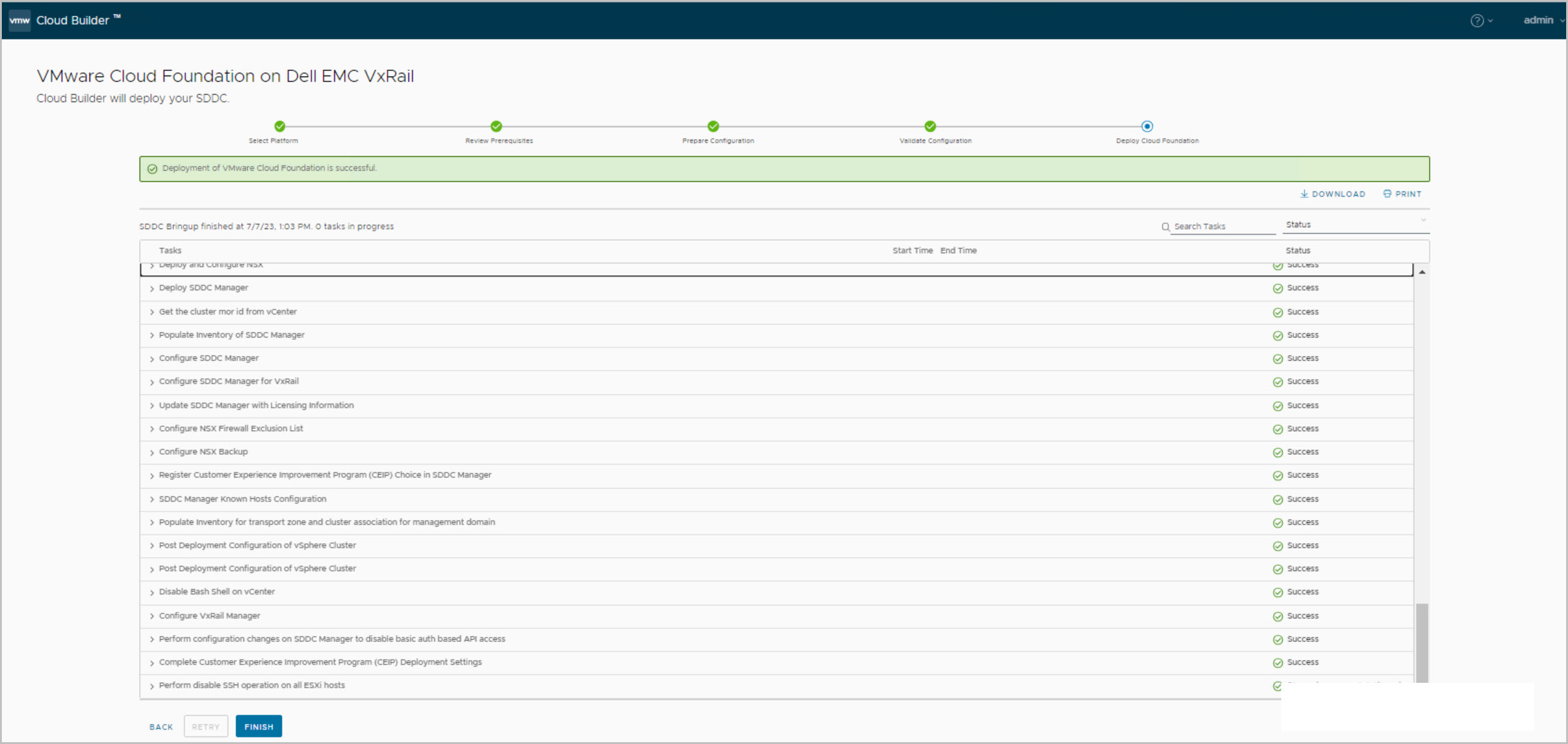 Note: Cloud Builder in previous releases generated a JSON file for the management cluster from the uploaded config file, this vcf-public-vxrail.json file is now automatically deleted upon successful bring-up to address security concerns.