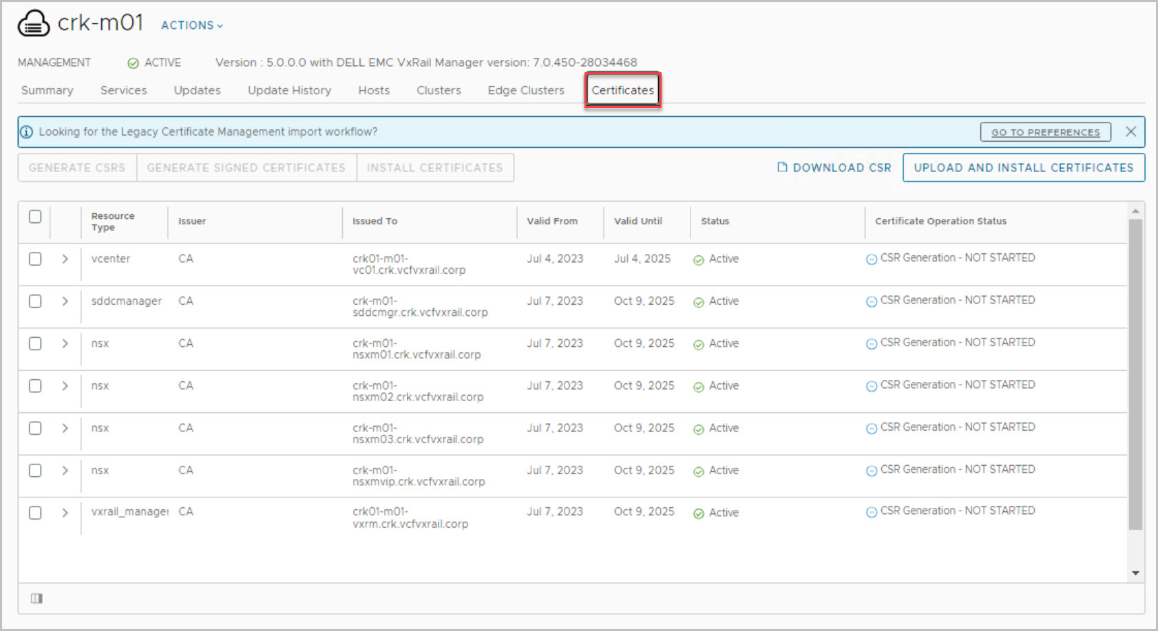 Versions used in this example are VCF 5.0 On VxRail 8.0.100. Release Information: