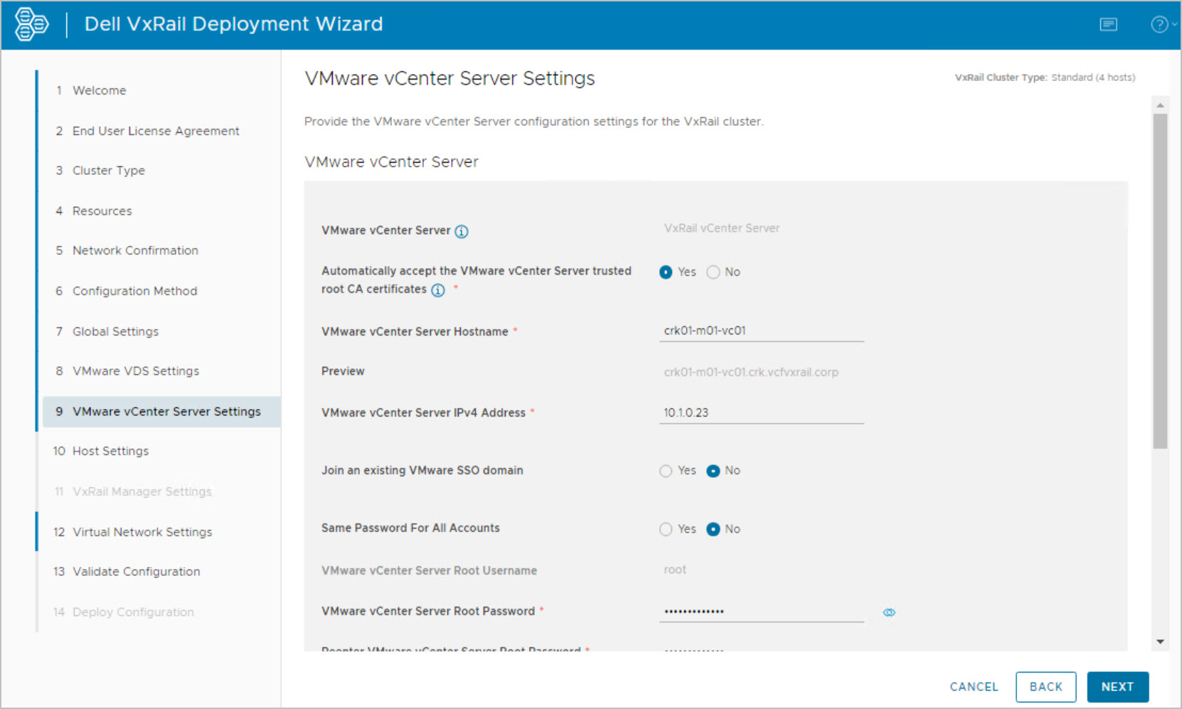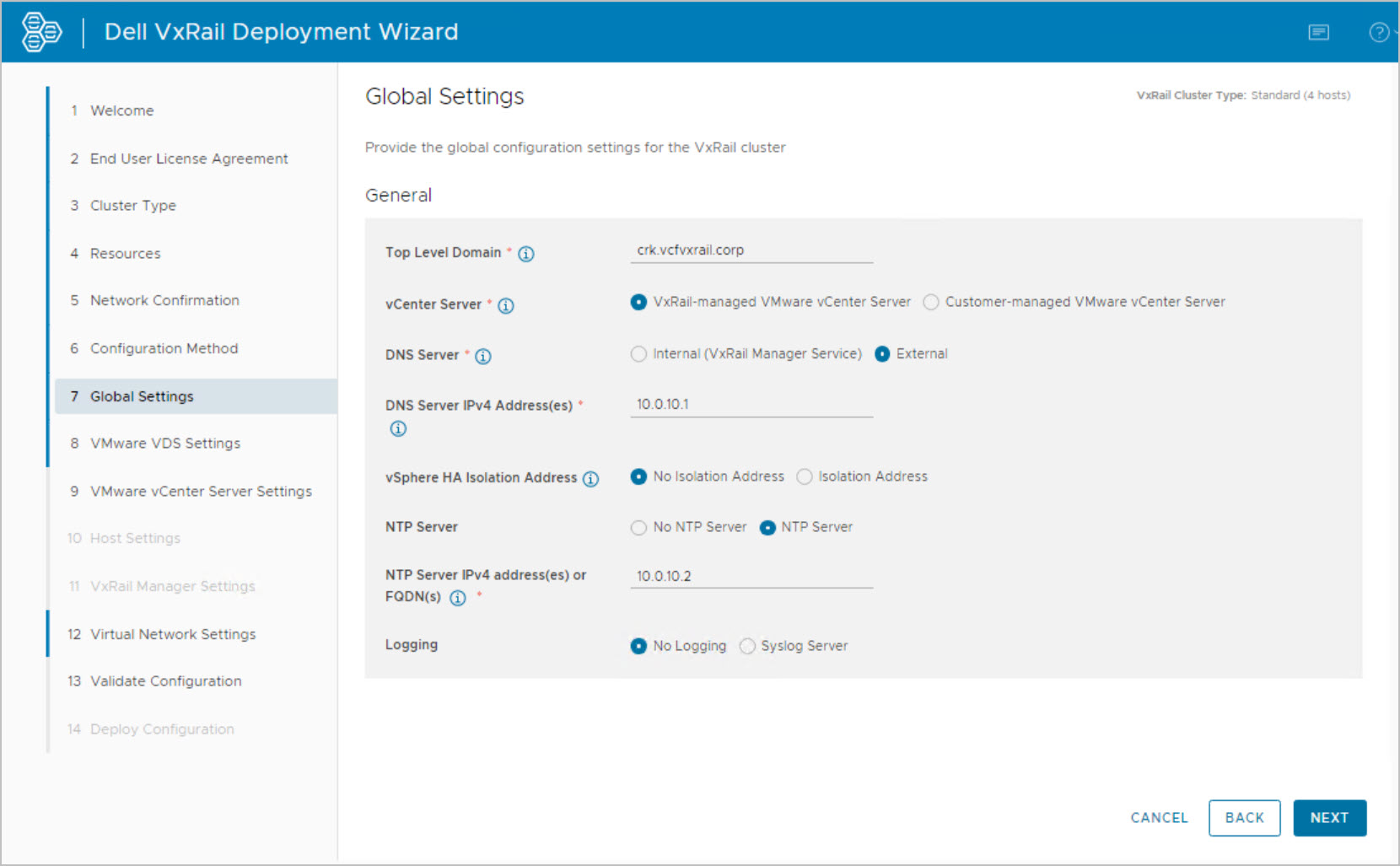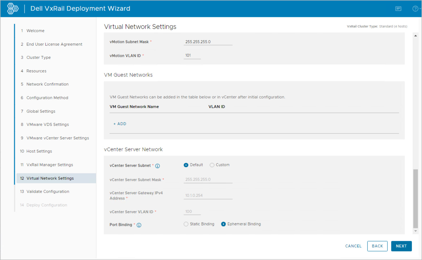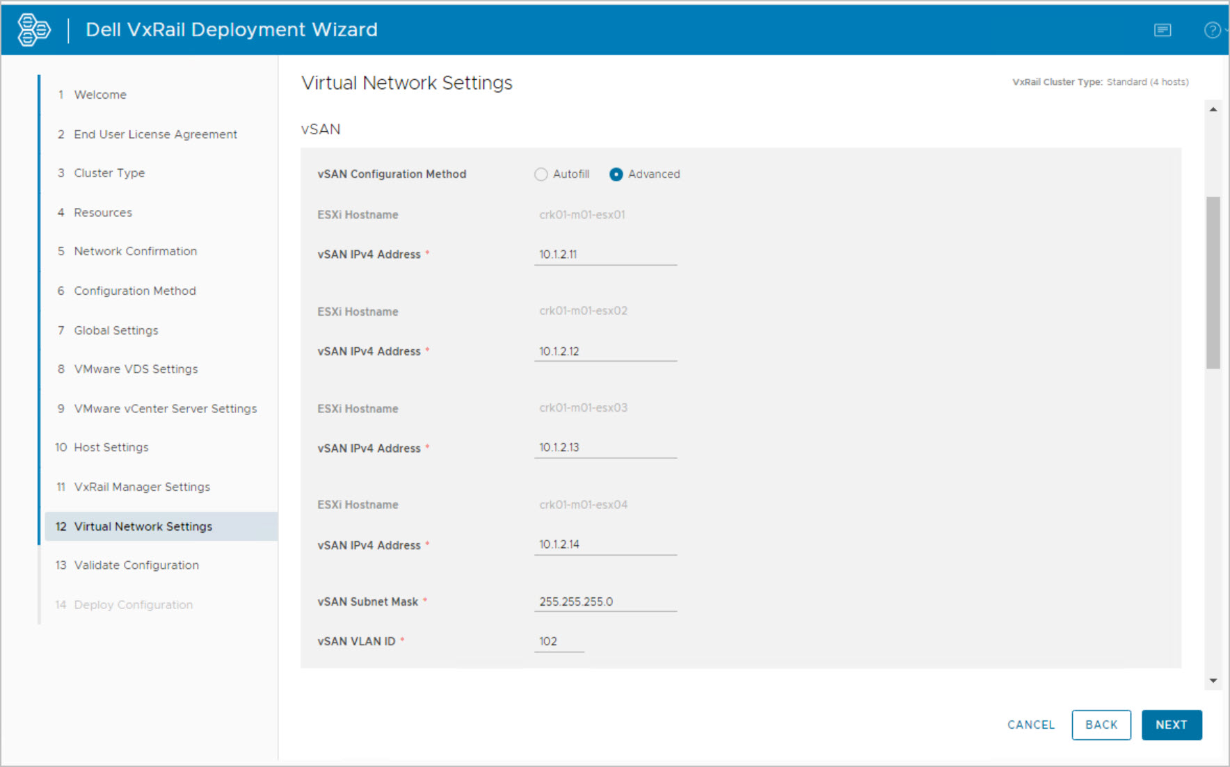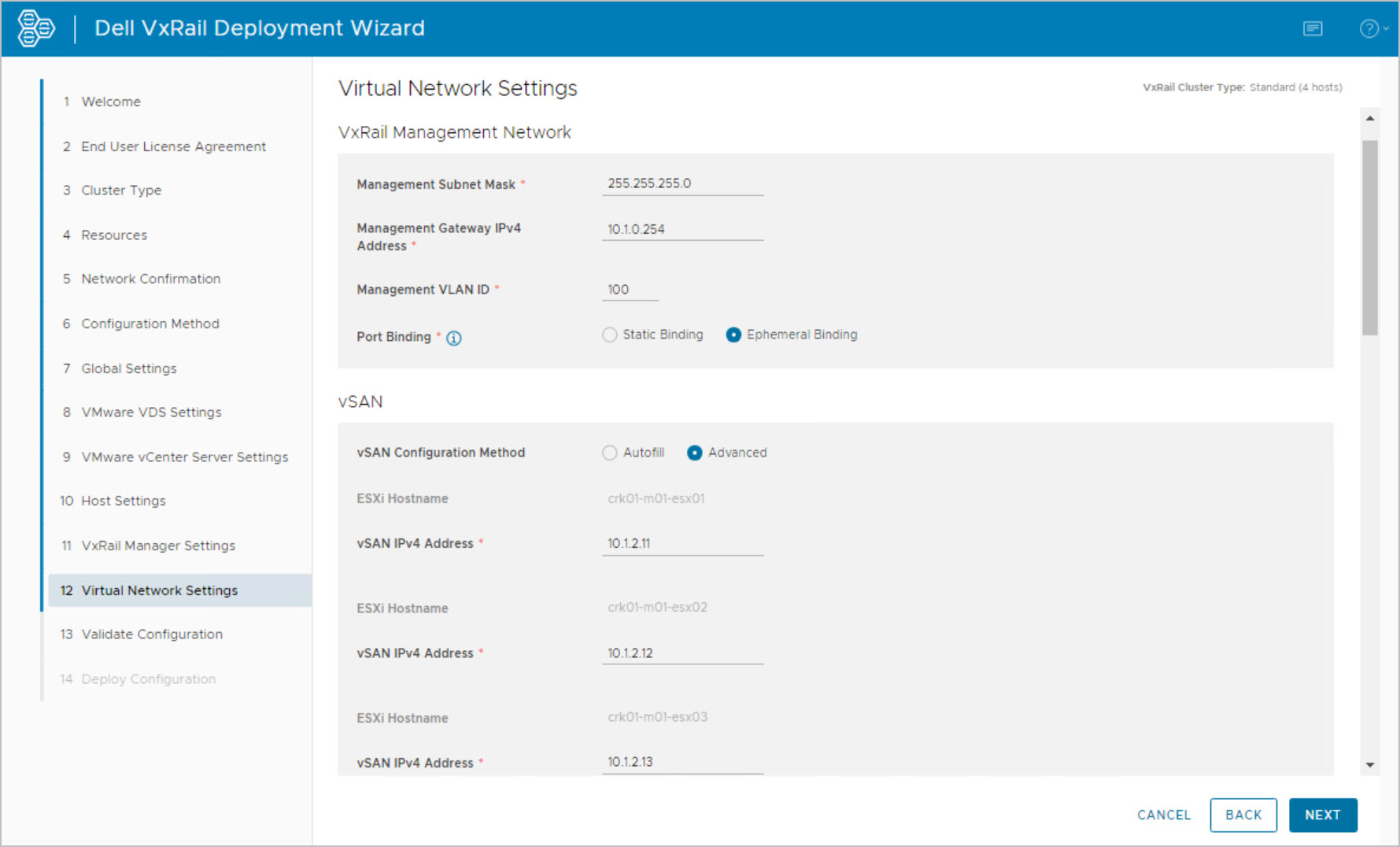 Note: this is an example for reference only please use the VxRail installation procedures & services provided by Dell.