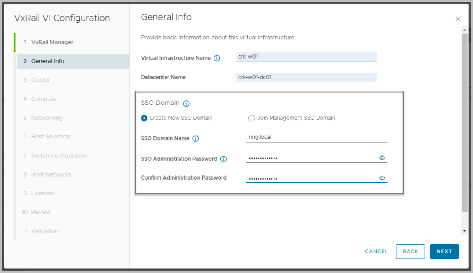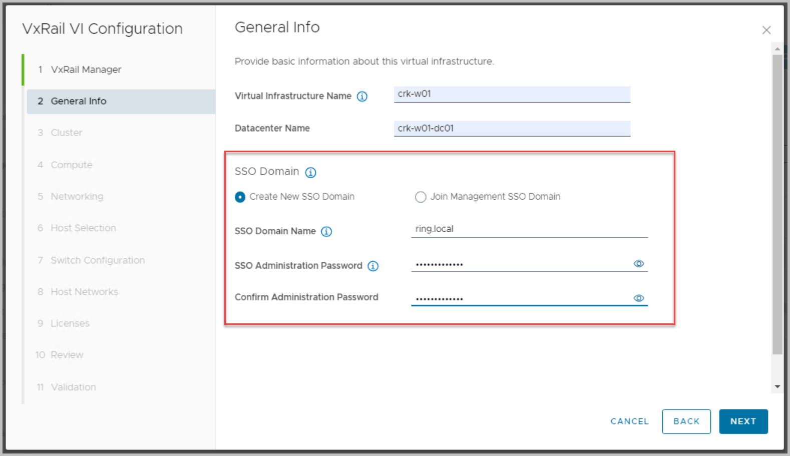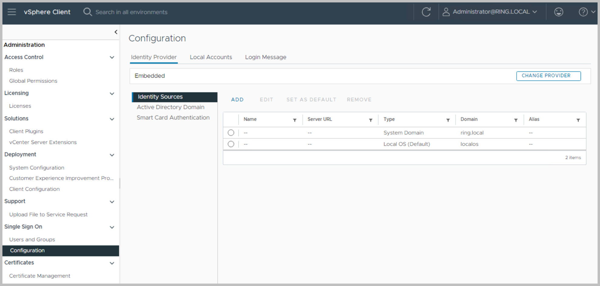 In this example I chose to create a new SSO domain ‘ring.local’ leveraging the new Isolated SSO WLD feature in VCF 5.0: