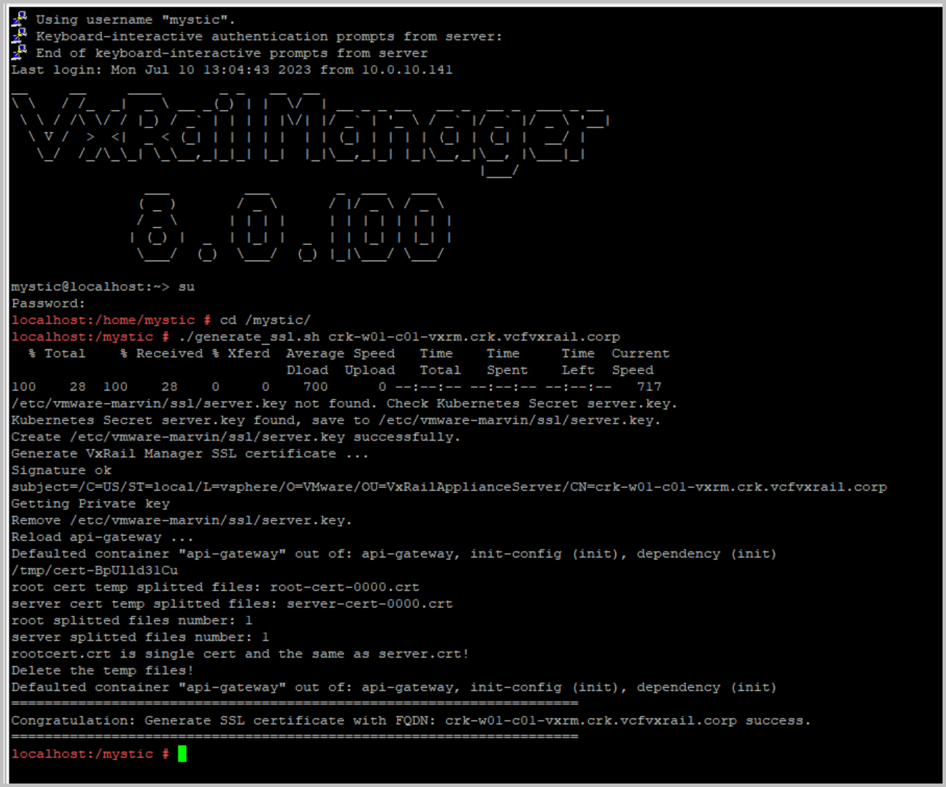 Update VxRail Manager Certificate with the correct Hostname by logging into VxRail Manager via ssh with mystic followed by su. cd /mystic dir and run the following script: