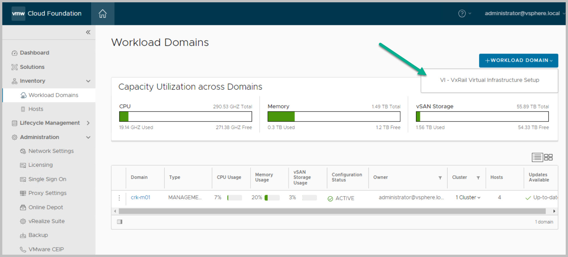 Login to SDDC Manager UI and complete the UI for WFO procedure to create a new VI WLD as per this example: