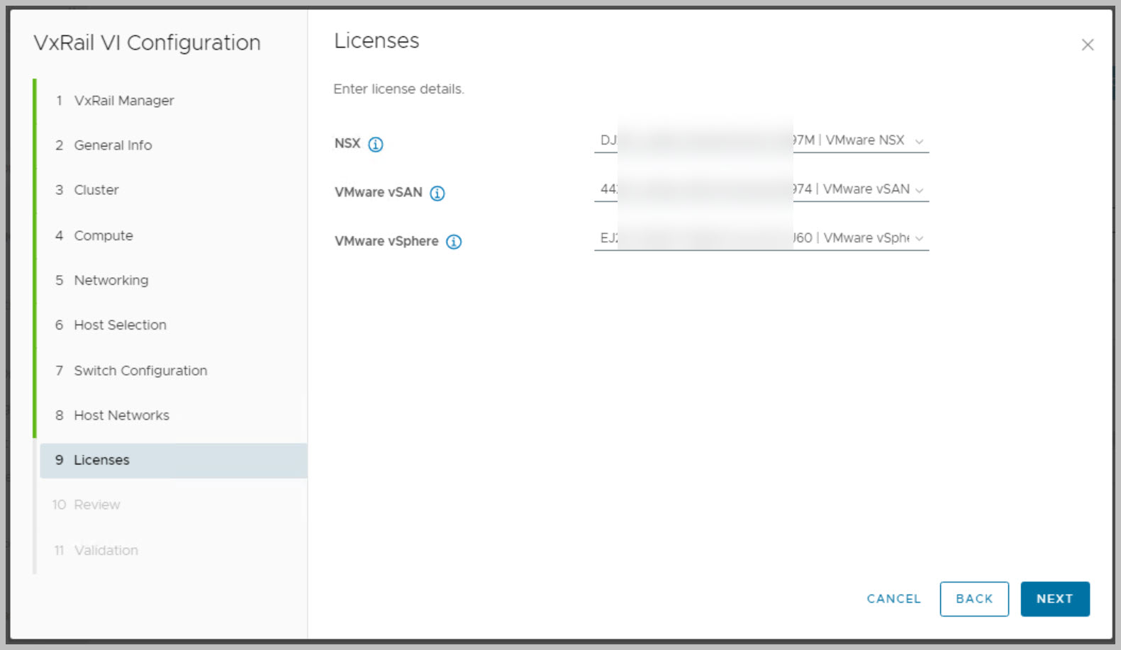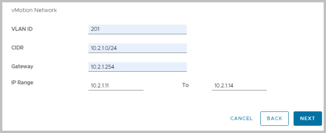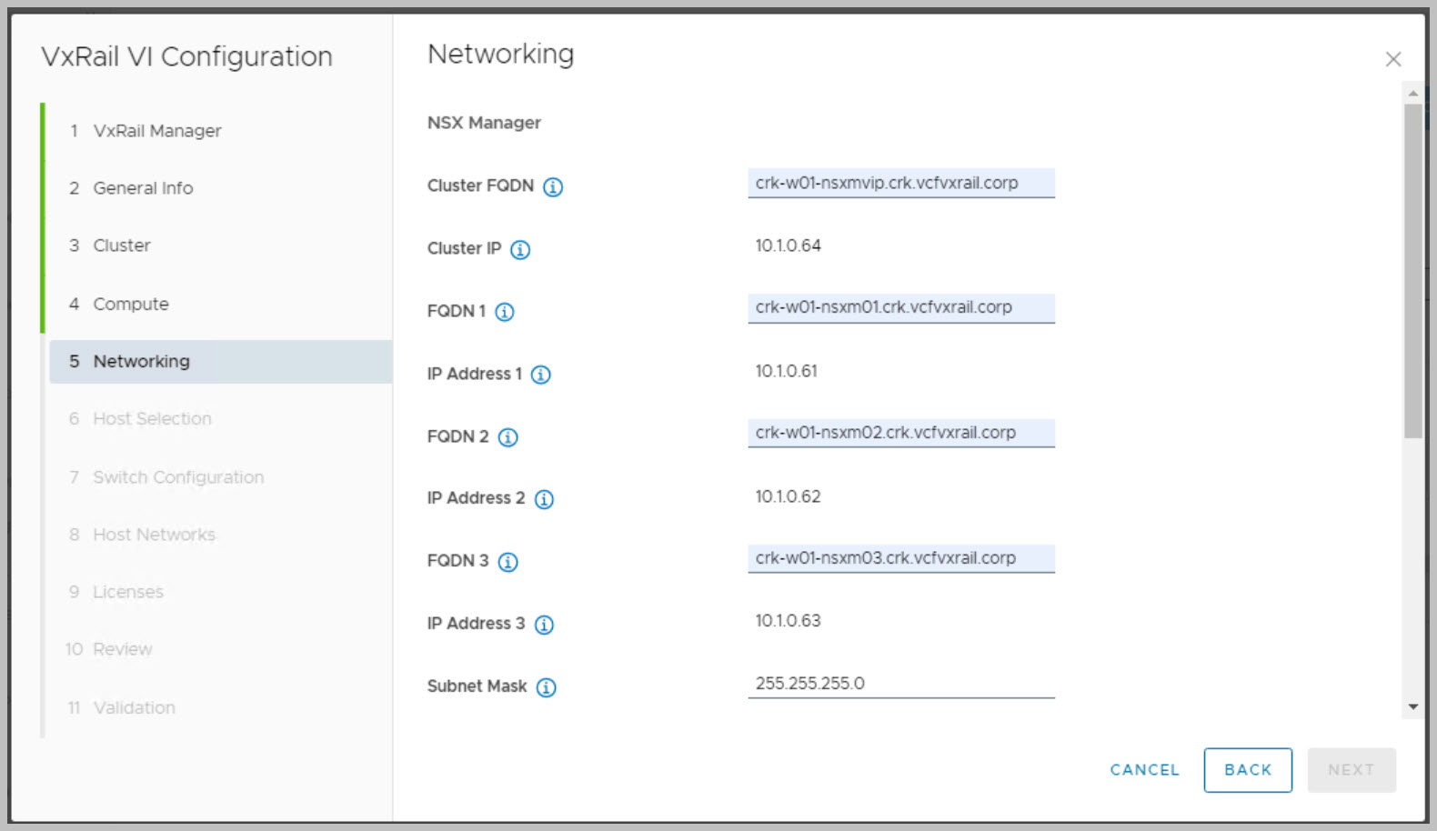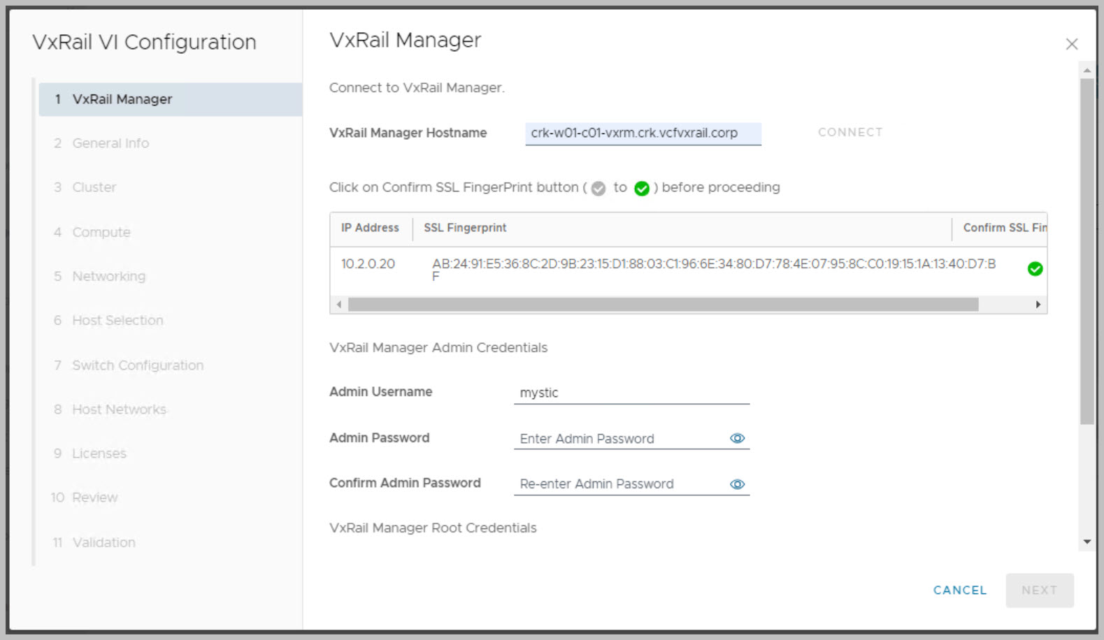The following input values are required as per the process of creating a VI WLD from the SDDC Manager UI: