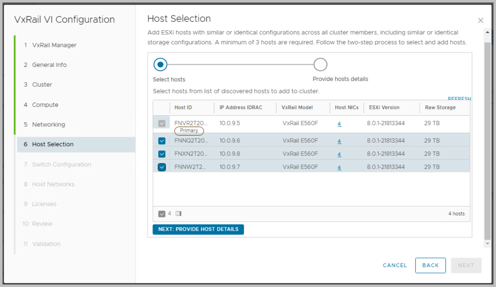 Change the VxRail Manger IP address & confirm discovery of hosts:
